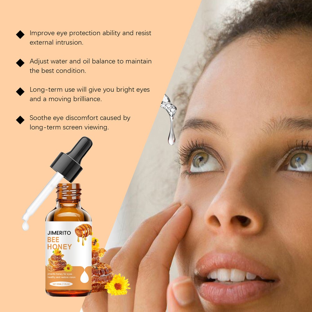 Jimerito Bee Honey for Eyes Jimerito Clear Eye Drops for Eyes Strain Red Eyes Bullet Points: Mild Ingredients: Replenishing Hydration: Our Honey Eye Drops provide optimal eye comfort with a natural formula that replenishes moisture, soothes dryness, irritation, and discomfort; promoting healthy eyes for all-day relief Immediate Eye Stress Removal: Say goodbye to eye stress with Honey Eye Drops. Its quick-action formula immediately removes stress, provides comfort and moisture to rejuvenate your eyes, giving you an instant relief that lasts all day Vision Boost: Experience clearer vision through proper eye hydration, as our honey eye drops provide must-have moisture and lubrication, enhancing and improving your overall eye health Strong Hydration: Honey eye drops offer intense moisture, supporting overall health internally and externally, ensuring your eyes stay hydrating and healthy throughout the day Good Present Selection: These honey eye drops are perfect for computer workers, providing soothing relief and must-have nutrients for long hours at screens. Keep your eyes healthy and comfortable Honey Drops are made with natural ingredients for powerful moisturization and instant relief of tired, stressed eyes. Providing moisture and lubrication, it's the perfect choice for computer workers seeking comfort. Specification. Name: Bee Honey drop for Eye Volume: 30ml List Bee Honey drop for Eye*1 Dear buyers : ● Welcome to my store ! ● Your satisfaction is our top goal,we appreciate your patronizing. ● If you have any questions, please contact us before leave negative or neutral feedback, we will try our best to solve the issue to your satisfaction, thanks ! ● If you are satisfied with our service, please rate the details of the transaction (Detailed Seller Ratings) on eBay. ● Please always talk to us via ebay Message. ● We appreciate your business and look forward to growing our e-Bay sales with satisfied customers. On Feb 20, 2025 at 02:45:59 PST, seller added the following information: