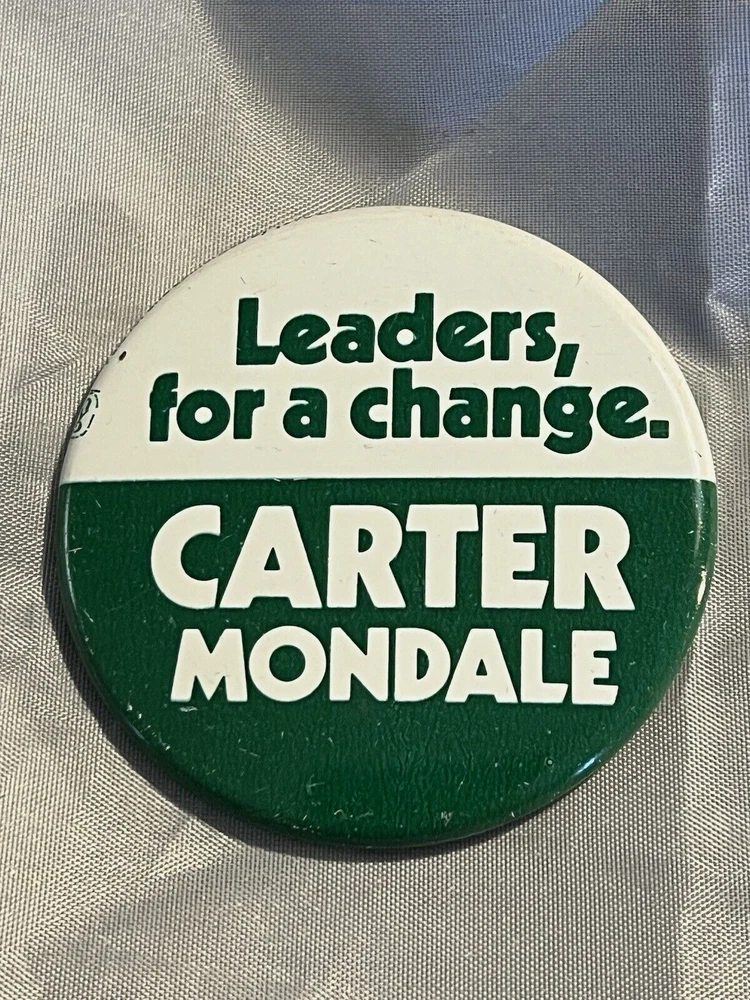 Capture a piece of political history with the vintage Jimmy Carter Pin Button from 1976, featuring the iconic campaign slogan "Mondale Leaders For A Change." This classic piece of memorabilia is a must-have for collectors and enthusiasts of U.S. political campaigns. Its design embodies the spirit of the era and commemorates Carter's presidential run. Crafted with care, the pin button's provenance is unspecified, adding an element of mystery to its already appealing allure. Ideal for displaying at events, adding to a collection, or gifting to a history buff, this pin is a tangible link to the past and a conversation starter wherever it's worn or displayed.