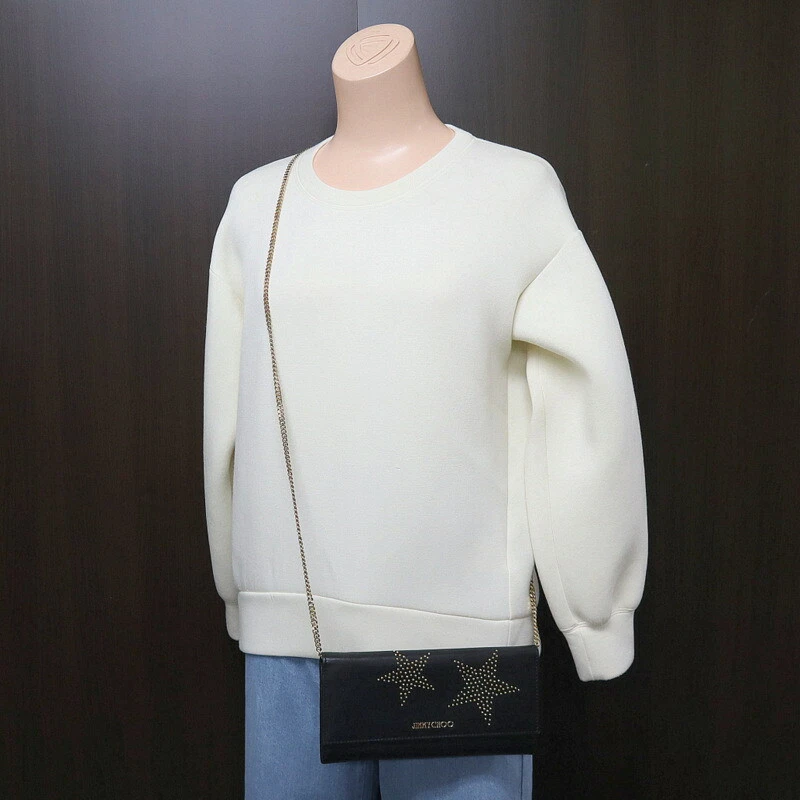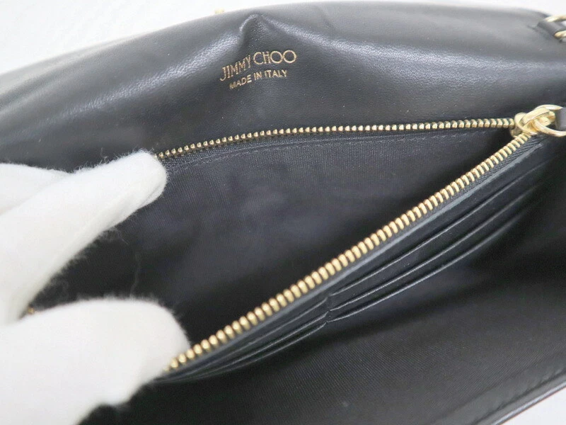This Jimmy Choo wallet is absolutely stunning! The black leather is sleek and luxurious, and the studded chain detail adds the perfect edgy touch. It arrived securely packaged and in great condition. Shipping was fast, and the seller was professional. Very happy with this purchase—it’s both stylish and functional!