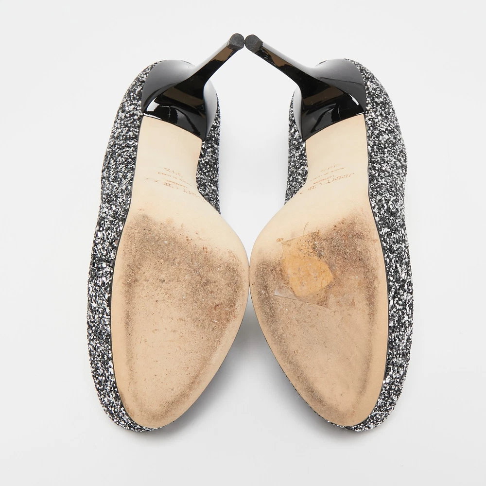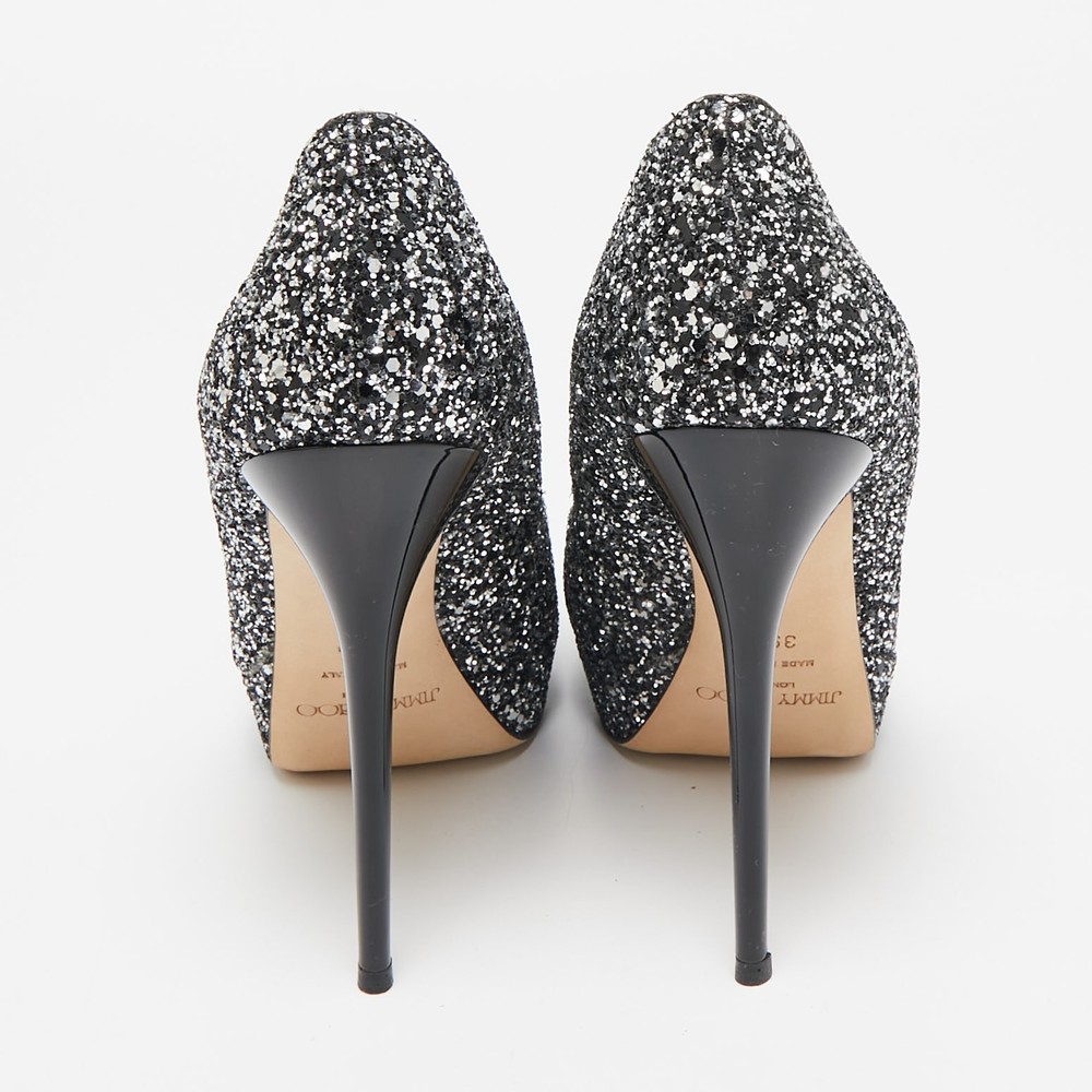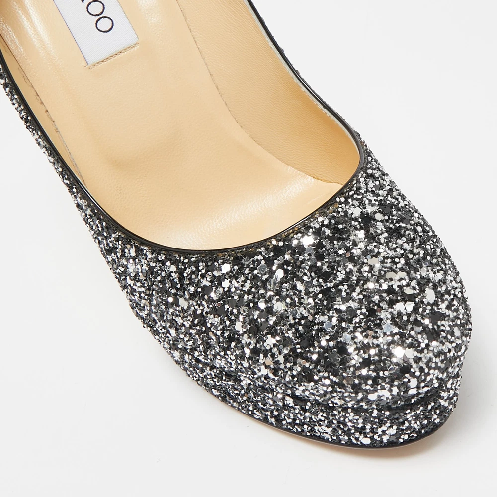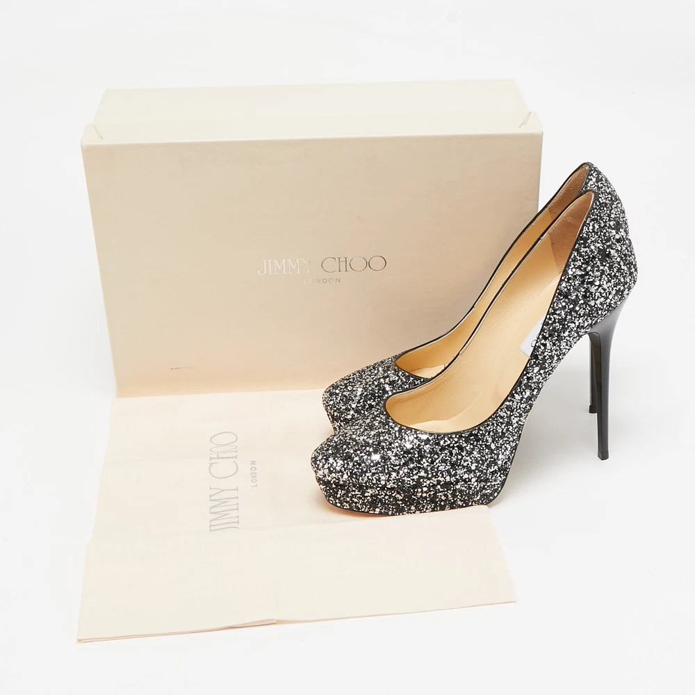 Make a chic style statement with these designer pumps. They showcase sturdy heels and durable soles, perfect for your fashionable outingsCertified by The Luxury Closet - This item has gone through a detailed authentication process overseen by our experts. We offer a lifetime guarantee of authenticity on all our items. Import duties, taxes and charges are not included in the item price. These charges are the buyers responsibility. Please check with your country’s customs office to determine what these additional cost will be prior to buying. Our eBay Store About Us Contact Us Add to Favorite Sellers Jimmy Choo Silver/Black Glitter Cosmic Platform Pumps Size 39.5 $171.6 Make a chic style statement with these designer pumps. They showcase sturdy heels and durable soles, perfect for your fashionable outings Product Details Brand Color Silver Dimensions Material Glitter Size 39.5 Outsole Width 7 cm Outsole Length 22 cm Heel Height 13 cm Includes Original Box, Original Dustbag Certified by The Luxury Closet This item has gone through a detailed authentication process overseen by our experts. We offer a lifetime guarantee of authenticity on all our items. How We Check The in-house team of experts at The Luxury Closet is highly trained to verify the authenticity and the condition of the luxury products. They ensure that only 100% authentic items are put on sale.The evaluation process is unique with its own mix of assessment criteria and differs according to the category. Each item is evaluated based on the following combination of hallmarks, hardware, stitching, symmetry, material, craftsmanship, stamping, codes, hologram stickers, and packaging. Our authenticators also check if the items have been modified or amended (e.g., aftermarket diamonds, replaced batteries, repaired bags, etc.) International Buyers Import duties, taxes and charges are not included in the item price. These charges are the buyers responsibility. Please check with your country’s customs office to determine what these additional cost will be prior to buying.