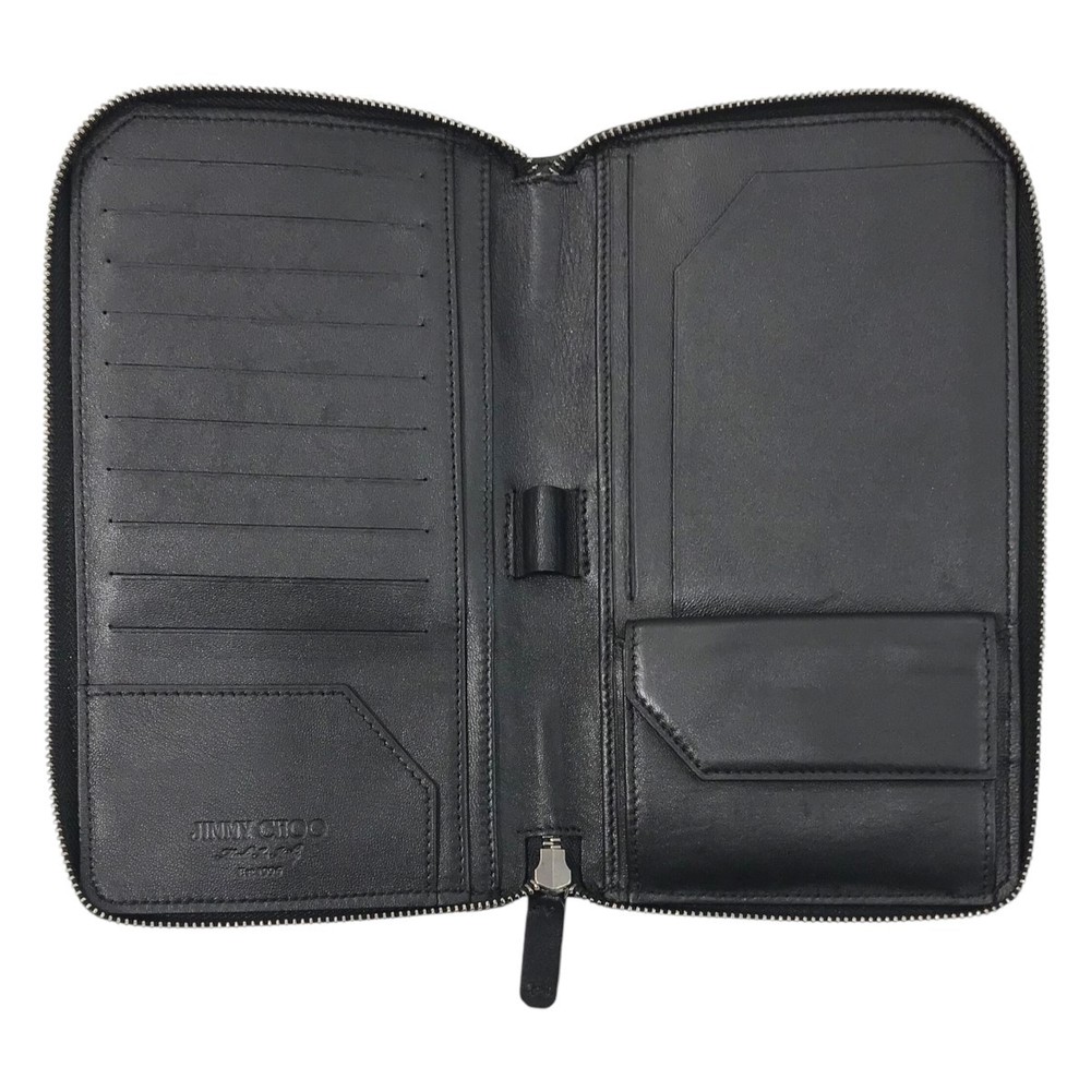 This wallet is absolutely stunning! The black leather is luxurious, and the star studs add a perfect touch of glam. Spacious enough for all my cards and cash, yet sleek and stylish. The quality is top-notch, just what you'd expect from Jimmy Choo. Fast shipping and great packaging—very happy with this purchase!