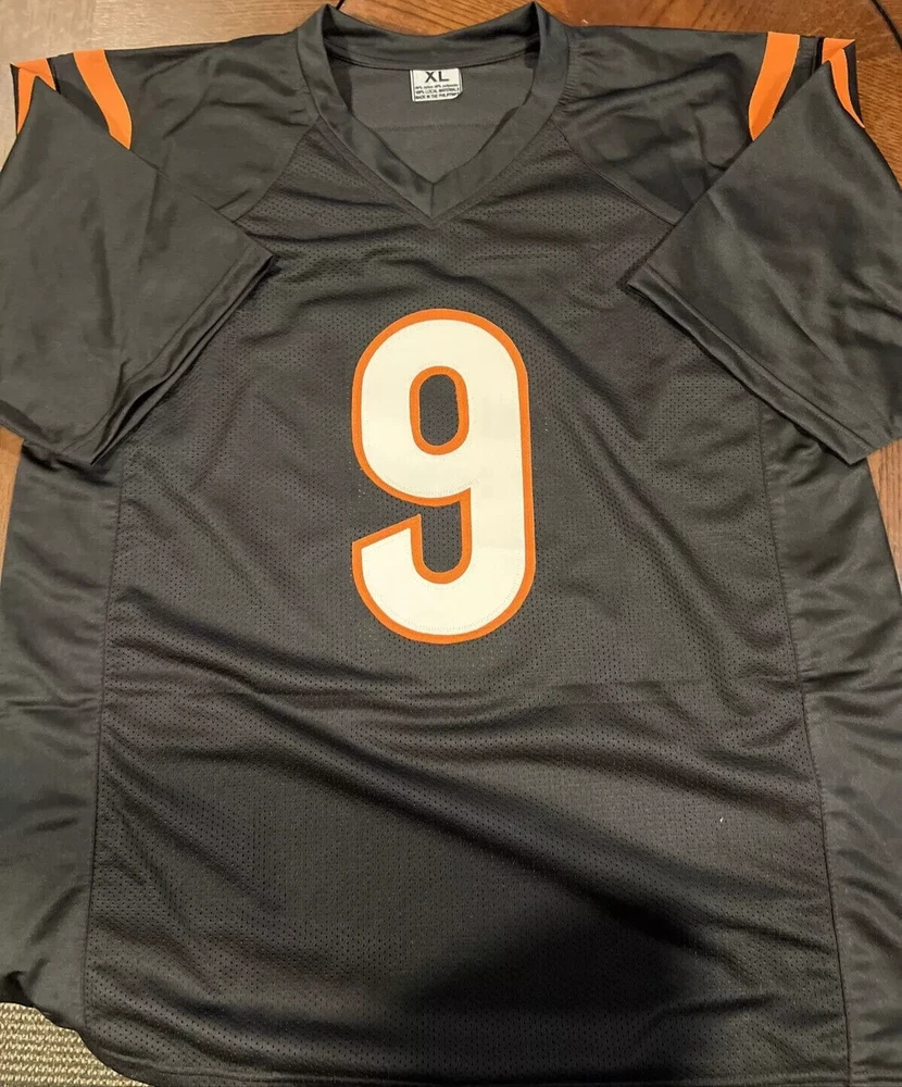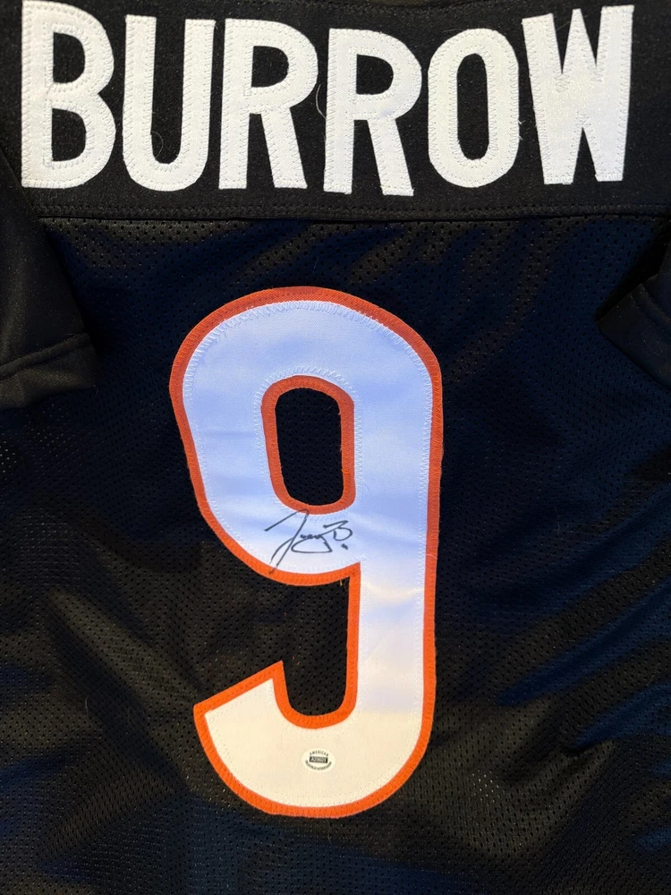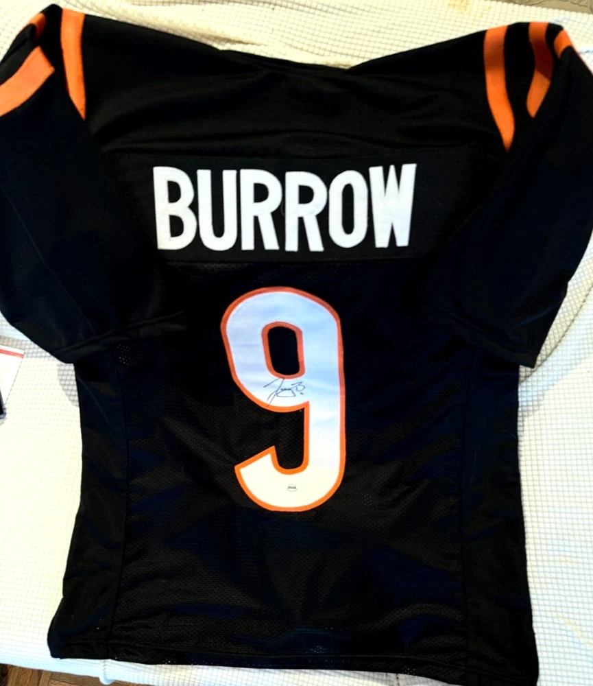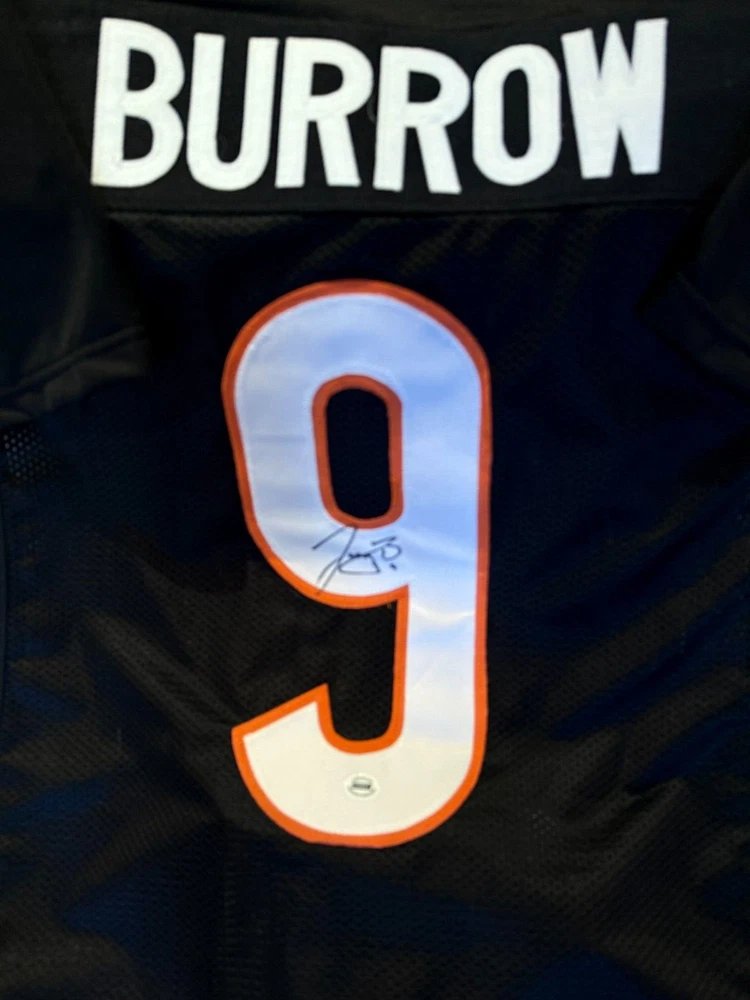 This Cincinnati Bengals #8 Joe Burrow jersey is a must-have for any football fan! It features the actual, witnessed signature of Joey B, the team's young star player. The jersey is a size XL although it fits me perfectly (I'm about 6'2)....Should be good sizing on anyone 5'11-6'4ish. The authenticity of the signature is backed by ACA Auctions and contains a verifiable holographic serial number which can be confirmed online. The COA will be included with this jersey. This is a rare opportunity to own a piece of sports memorabilia from one of the NFL's great young wide quarterbacks and former Collegiate National Championship Winner and 2019 Heisman Trophy winner. It would also work well in a shadow box display or in decorating your man cave or bar. Great price! I'm a Saints fan so no need for this jersey, although I did go to LSU and we're all huge Joe fans! Free, insured USPS Priority Mail Shipping! I try to get orders out same day if they're purchased before noon EST, otherwise it's next day. *****NOTE -->>. 3 DAY AUCTION - QUICK PAYMENTS ONLY - LEAVING THE COUNTRY THIS WEEKEND! No work so I'm shipping out within 2-3 hours of payment. Please message me with any questions - Thanks!