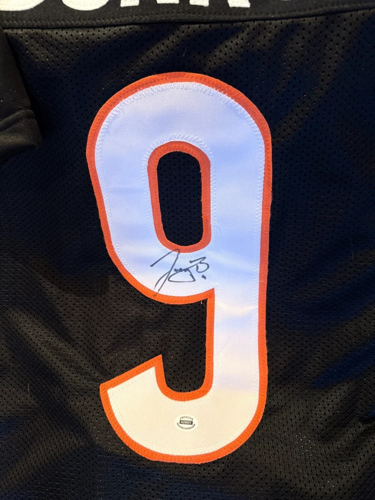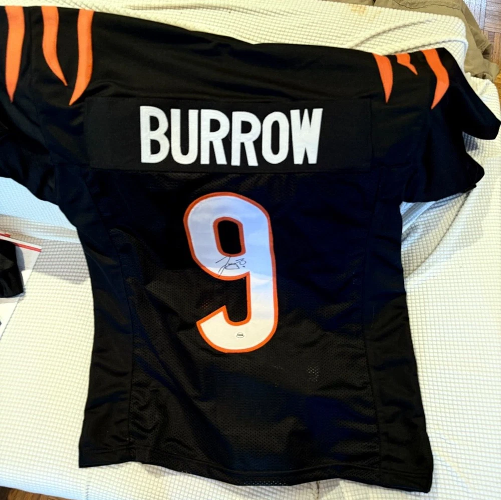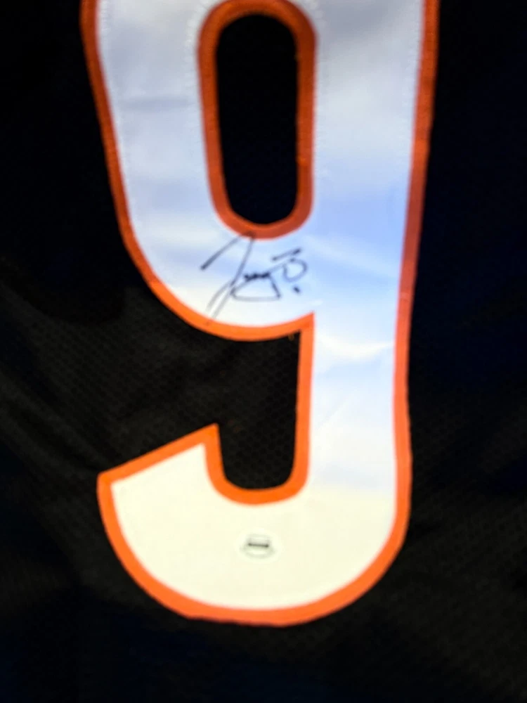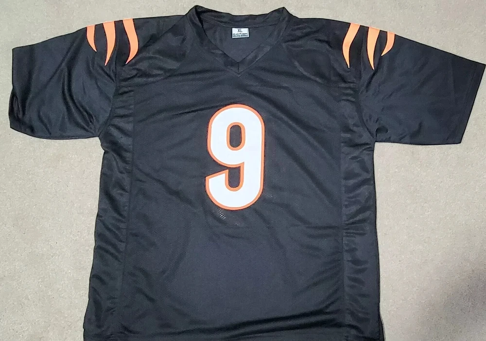 This Cincinnati Bengals #8 Joe Burrow jersey is a must-have for any football fan! It features the actual, witnessed signature of Joey B, the team's young star player. The jersey is a size XL although it fits me perfectly (I'm about 6'2)....Should be good sizing on anyone 5'11-6'4ish. The authenticity of the signature is backed by ACA Auctions and contains a verifiable holographic serial number which can be confirmed online. The COA will be included with this jersey. This is a rare opportunity to own a piece of sports memorabilia from one of the NFL's great young wide quarterbacks and former Collegiate National Championship Winner and 2019 Heisman Trophy winner. It would also work well in a shadow box display or in decorating your man cave or bar. Great price! I'm a Saints fan so no need for this jersey, although I did go to LSU and we're all huge Joe fans! Free, insured USPS Priority Mail Shipping! I try to get orders out same day if they're purchased before noon EST, otherwise it's next day. *****NOTE -->>. 3 DAY AUCTION - QUICK PAYMENTS ONLY - LEAVING THE COUNTRY THIS WEEKEND! No work so I'm shipping out within 2-3 hours of payment. Please message me with any questions - Thanks!
