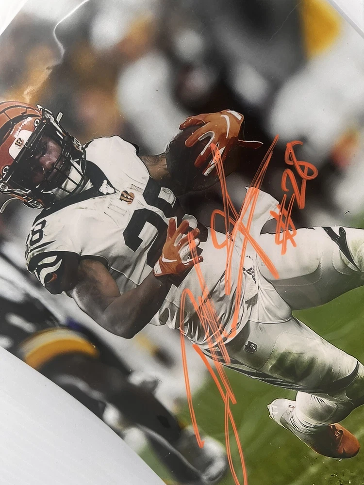 This incredible 8*10 photo would make a fantastic addition to any sports fan's collection. Featuring a stunning image of Joe Mixon, this original and authentic signed photo is a must-have for any Cincinnati Bengals supporter. With a certificate of authenticity included, you can be sure that this signed photo is the real deal. Whether you're a passionate football enthusiast or simply looking for a unique piece of sports memorabilia, this Joe Mixon signed photo is sure to impress.