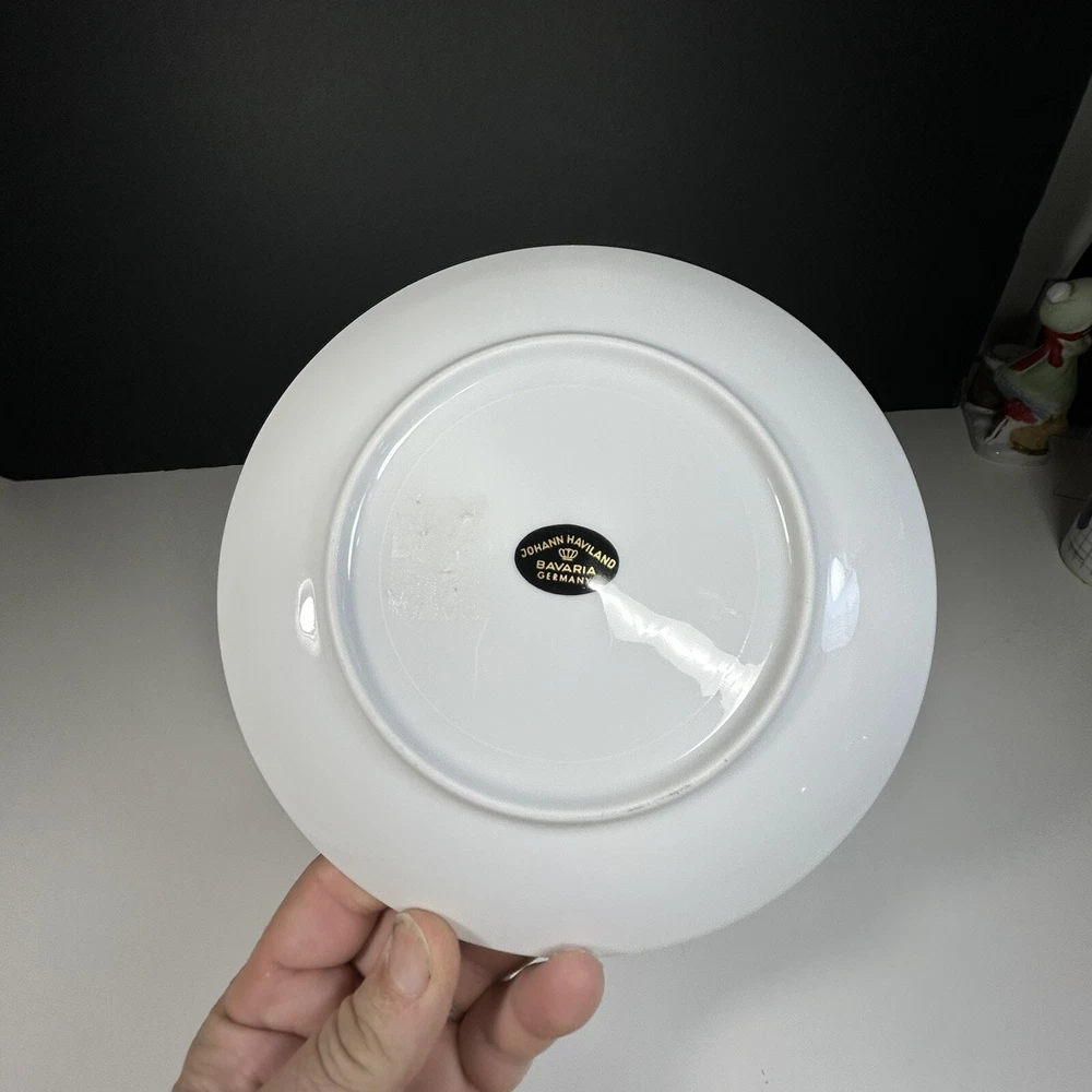Johann Havilland Cinnamon Rose Bavaria Germany Salad Plate 7.5 " The product is a Johann Haviland Cinnamon Rose Bavaria Germany Salad Plate measuring 7.5 inches. It is made of Bone China in a pink color. The plate features a decorative pattern and was manufactured in Germany by Johann Haviland. Please See All Pictures For Condition of Item and Details Before Purchasing ! Thank You For Looking and Have a Great Day!
