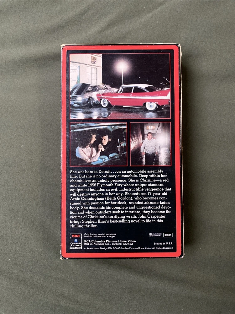 HomeJohn Carpenter’s Christine VHS Stephen King Horror 1984 RCA Columbia Side-loader