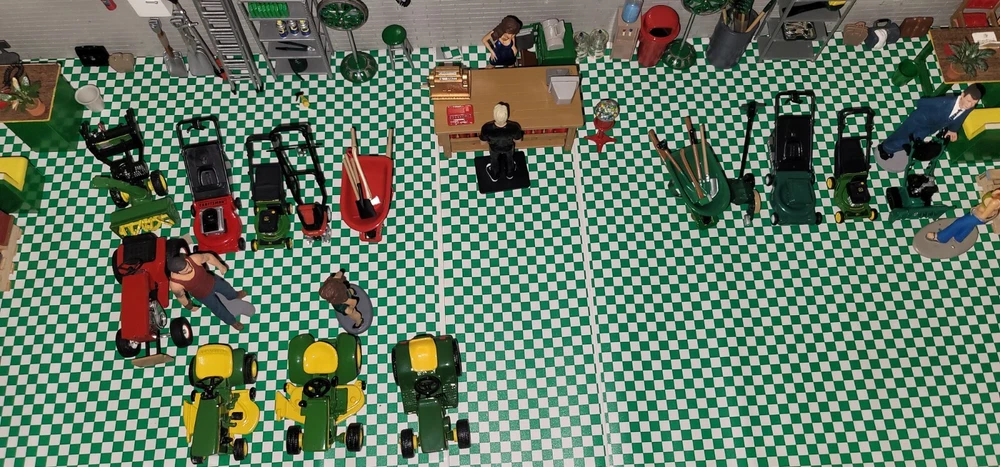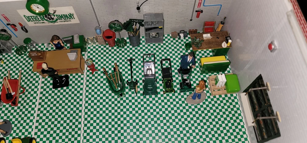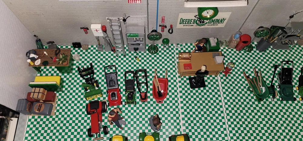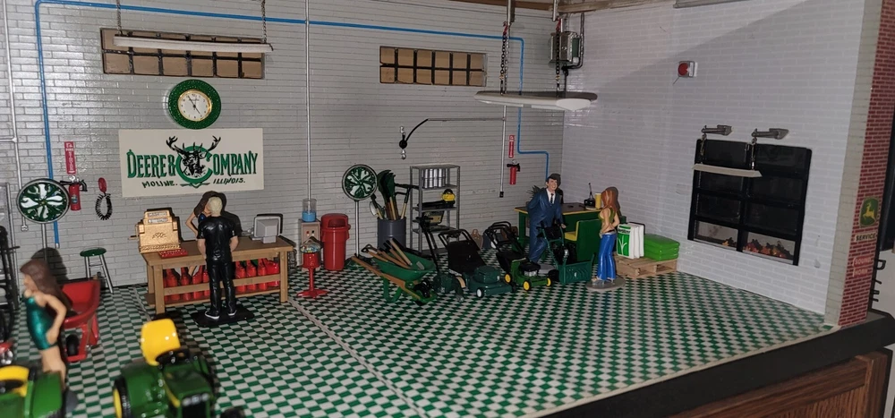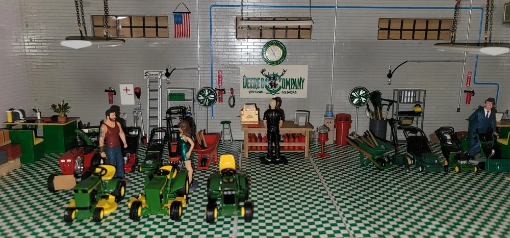 Will pack and ship every item in the pictures This John Deere Garage Diorama Display is a must-have for any collector or fan of the iconic brand. The 1:24 scale model is beautifully crafted with attention to detail and accurately represents the real-life John Deere Garage. The display is perfect for showcasing in your home or office, and is sure to be a conversation starter. The theme of agriculture is beautifully embodied in this collectible item, which is perfect for those interested in the history of agriculture and John Deere's role in it. This item is a great addition to any collection of John Deere memorabilia, and is sure to be a prized possession for years to come.