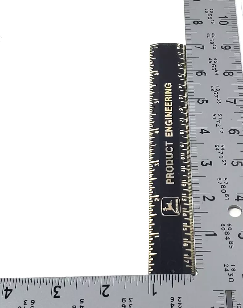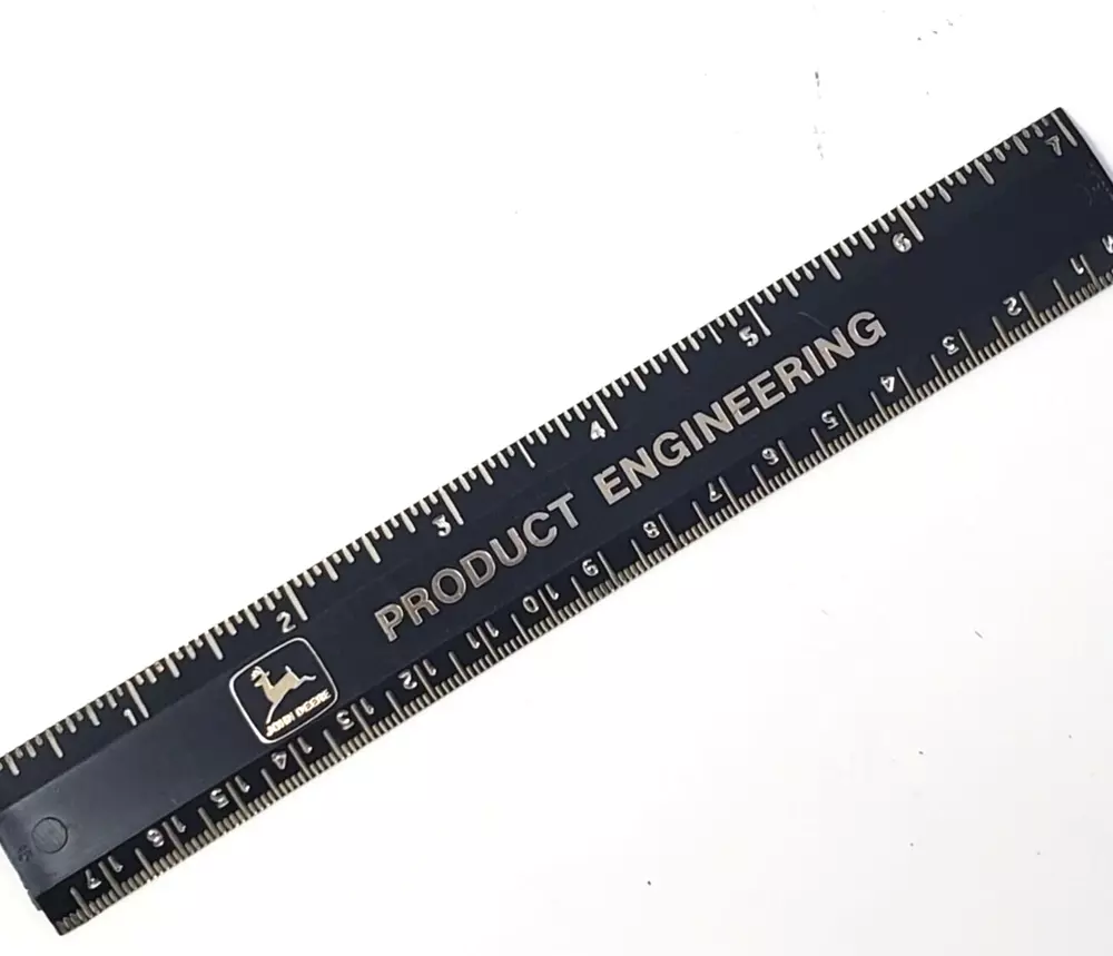 John Deere Product Engineering Black Metal Ruler 6" - Vtg Tool Vtg Condition: Used; some scratches and wear on the bottom as shown in the pictures. The ruler exhibits signs of age and use, including minor surface marks and discoloration. Please review all photos carefully to assess the item's condition. Description: This vintage John Deere Product Engineering 6-inch metal ruler is a sturdy and functional collectible. Featuring a sleek black finish with gold-tone lettering, this tool was designed for precision measurements. One side showcases clear, engraved markings, while the reverse side has wear and some visible etching. A great addition for vintage tool collectors, John Deere enthusiasts, or for everyday use in workshops and engineering settings. Details: Brand: John Deere Product: Product Engineering Metal Ruler Size: 6 inches (See photos for exact measurements) Color: Black with gold-tone lettering Material: Metal Features: Durable metal construction, precise markings, vintage collectible Shipping: Packaged securely to prevent damage. Ships via USPS. Combined shipping available for multiple items. Why Buy This Item? A vintage John Deere metal ruler is a practical and collectible tool with historical significance. Whether you're a John Deere fan, a tool collector, or just need a high-quality ruler, this piece offers both function and nostalgia. Its durable construction ensures it remains a reliable measuring tool, while its branding makes it a standout addition to any vintage tool collection. Visit My Store: Check out more vintage items at Kelly Vintage Market !
