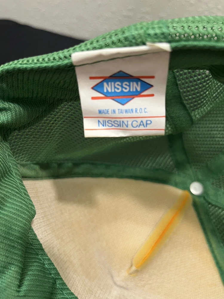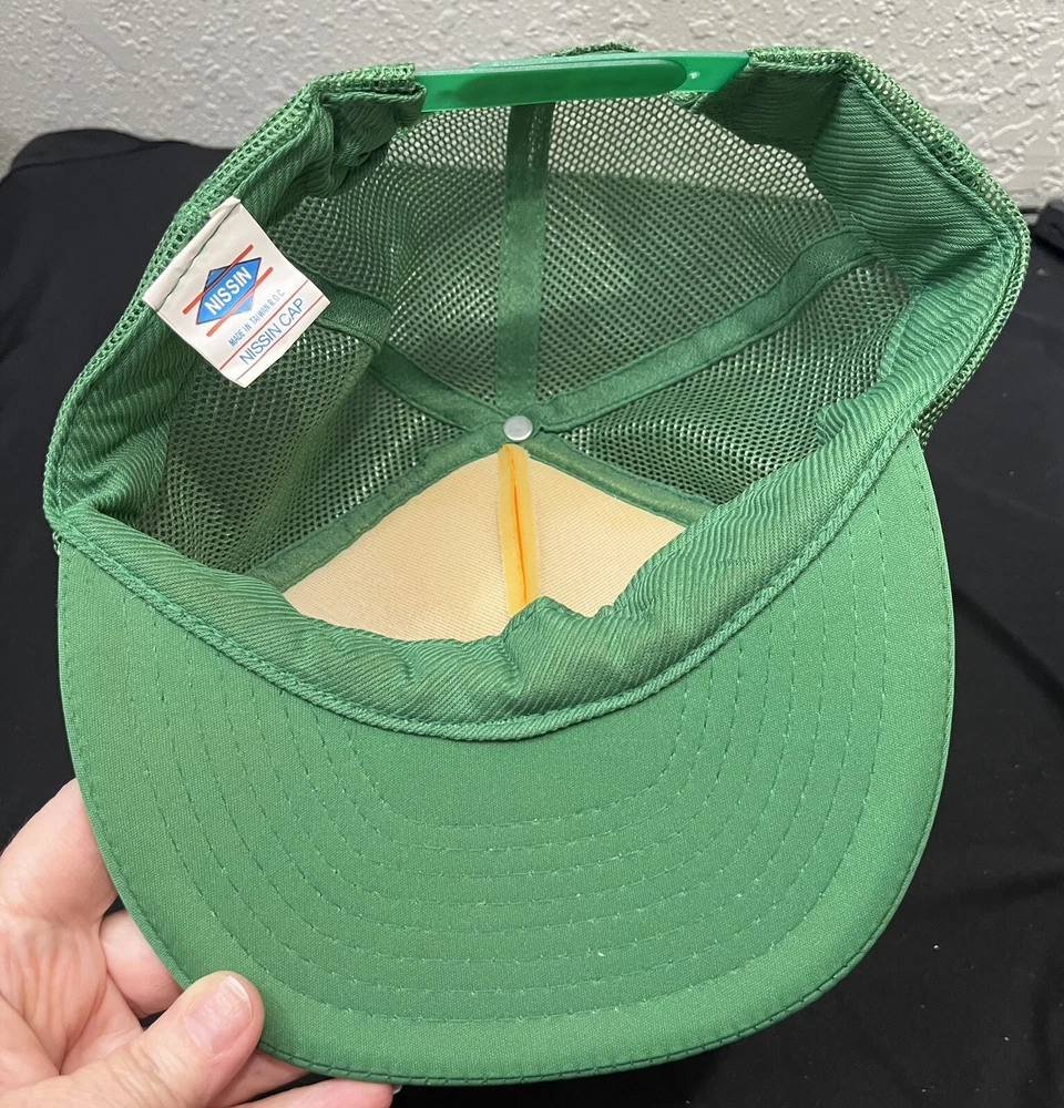 This RARE vintage John Deere Nissin snapback features custom artwork of a 1928 tractor, signed by RJ. The hat is a 1992 original, made in Taiwan. It is a great addition to any collector's advertising or John Deere memorabilia collection. The hat is in good condition and would make a great gift for anyone who loves agriculture or vintage items. Preowned and good condition. Hat does show some coloration on inside band and on the foam on the inner part of the hat from age. This is the real deal and has held up very nicely for its age. Artist signed.