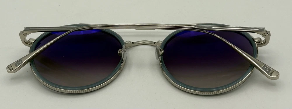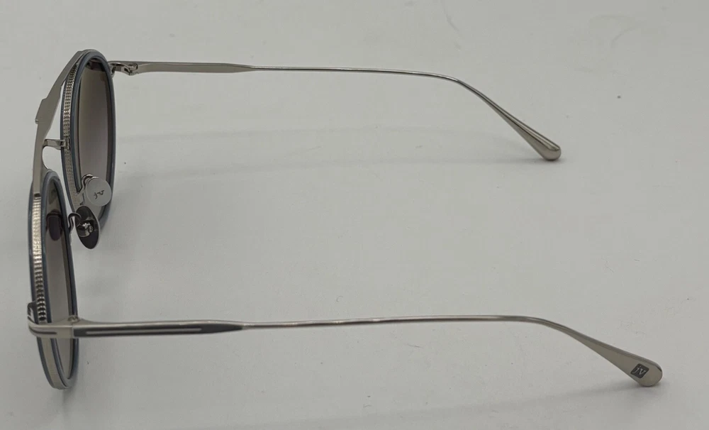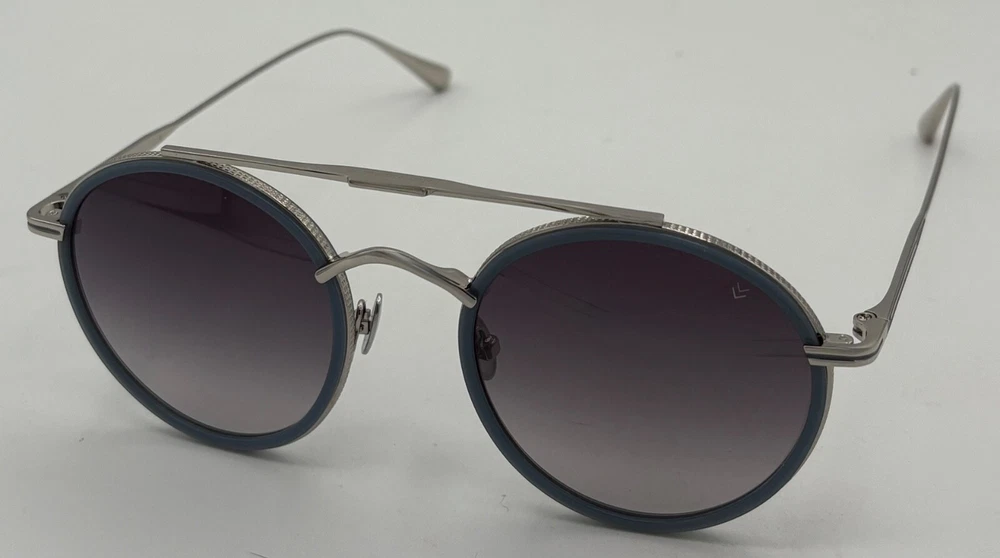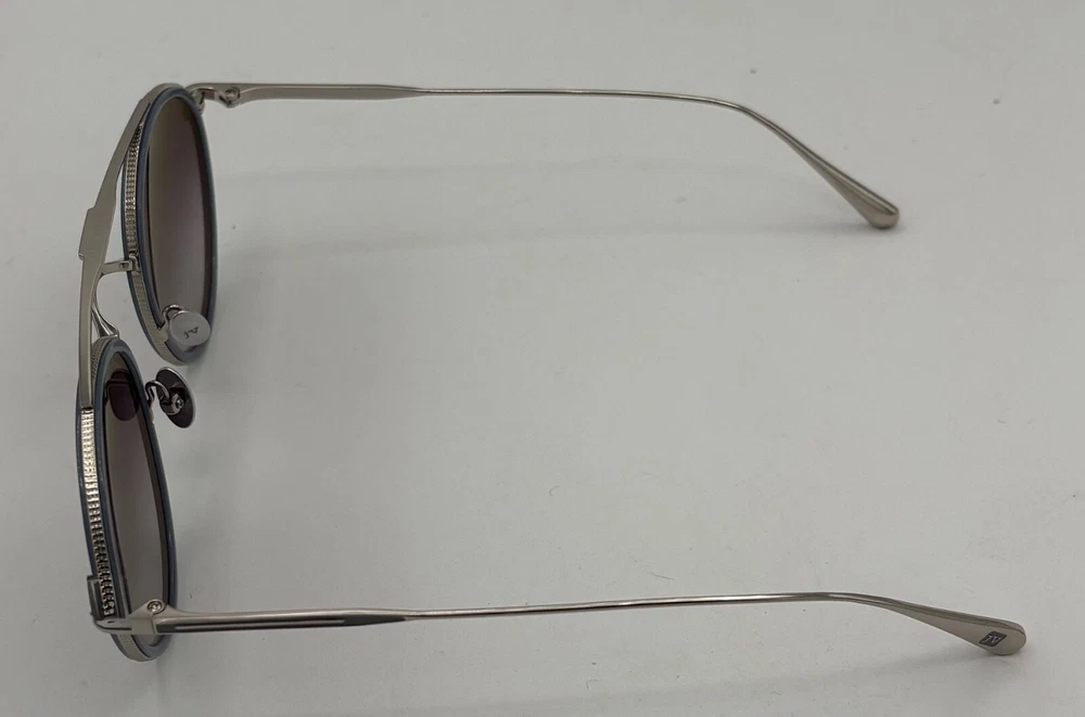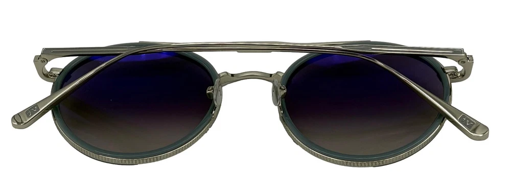Elevate your style with these designer John Varvatos sunglasses. The silver metal frame and smoke gradient plastic lenses provide 100% UV protection, making them both fashionable and functional. The round style and storm blue design add a touch of sophistication, while the 145mm temple length ensures a comfortable fit. Made in Japan, these sunglasses are a must-have for any fashion-forward man's accessory collection. Size: 53. 20. 145, Height: 46mm The Last One, No More Coming in