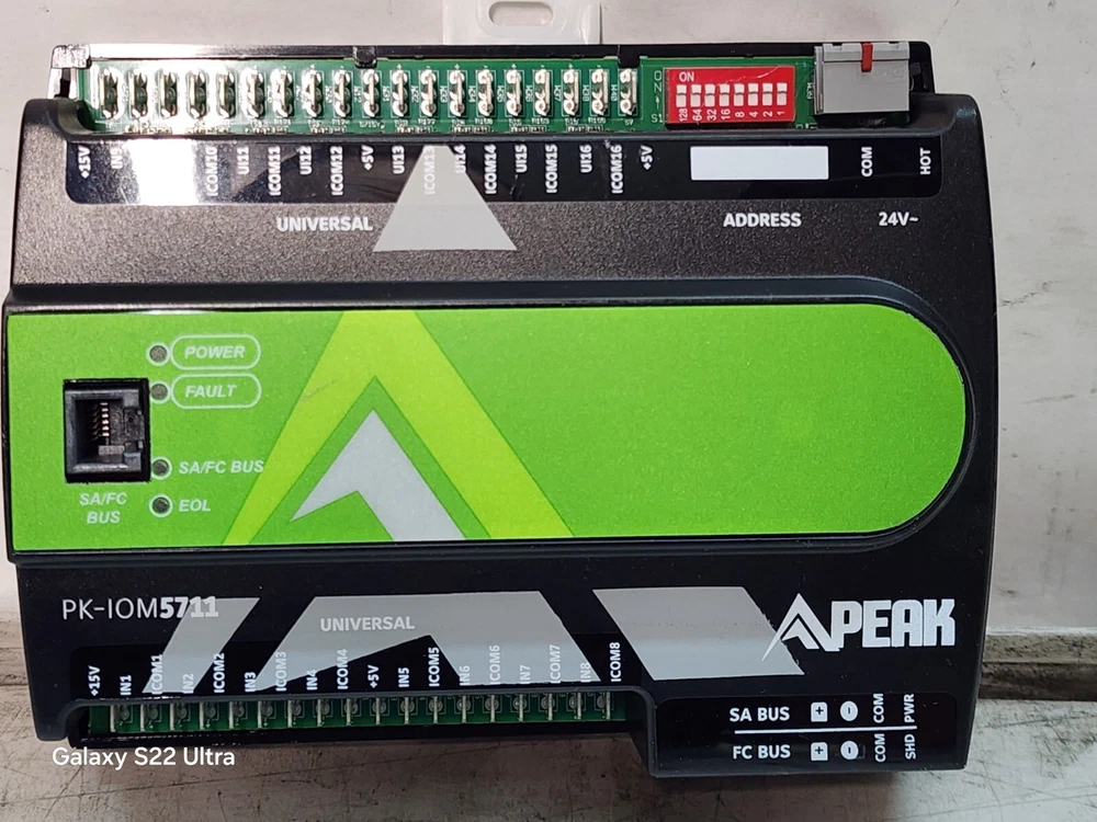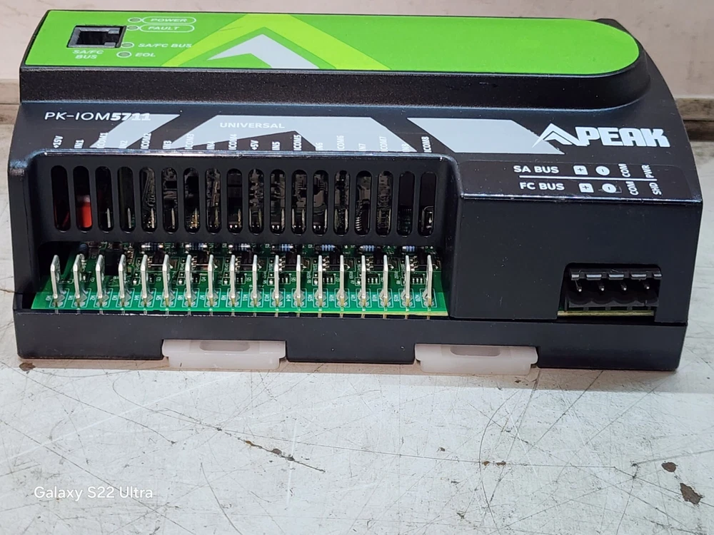 The product is the Johnson Controls Peak pk-iom5711-0, a PLC processor in the Industrial Automation & Motion Controls category. It is manufactured by Johnson Controls and belongs to the Peak series.
