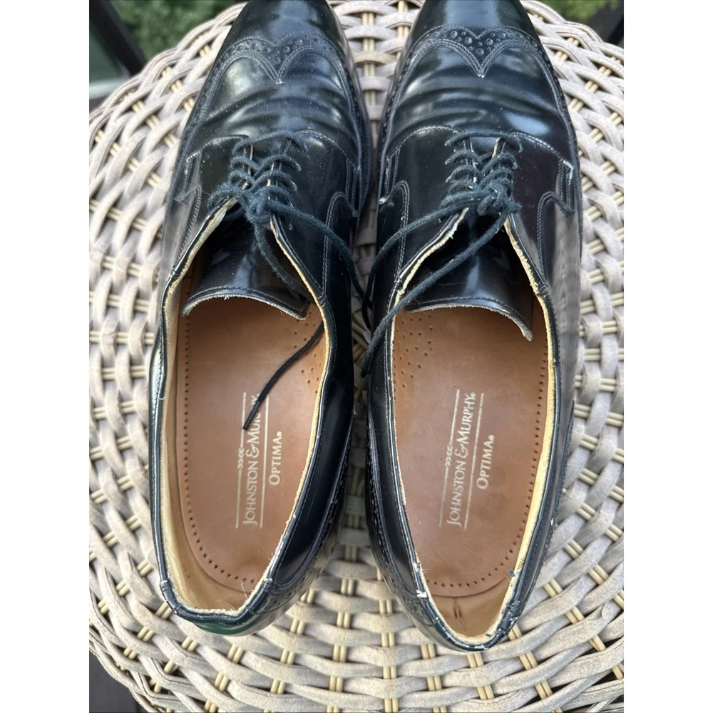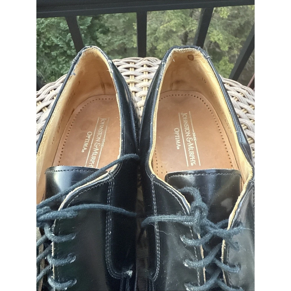 Johnston & Murphy Men’s Black Leather Oxford Dress Shoes Size 10 D Optima *** FAST SHIPPER *** The Johnston & Murphy Men’s Black Leather Oxford Dress Shoes in size 10D are a classic and stylish option for any man looking to elevate their formal footwear. With a sleek black leather exterior and a comfortable D width, these shoes are perfect for the modern gentleman. The Optima product line ensures quality and durability, making these shoes a staple in any gentleman's wardrobe.