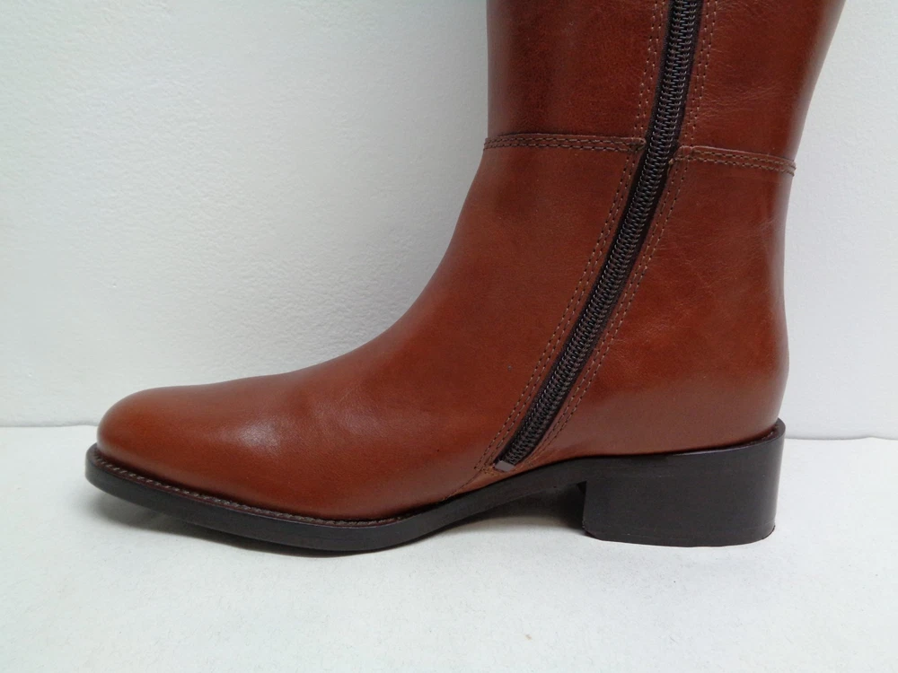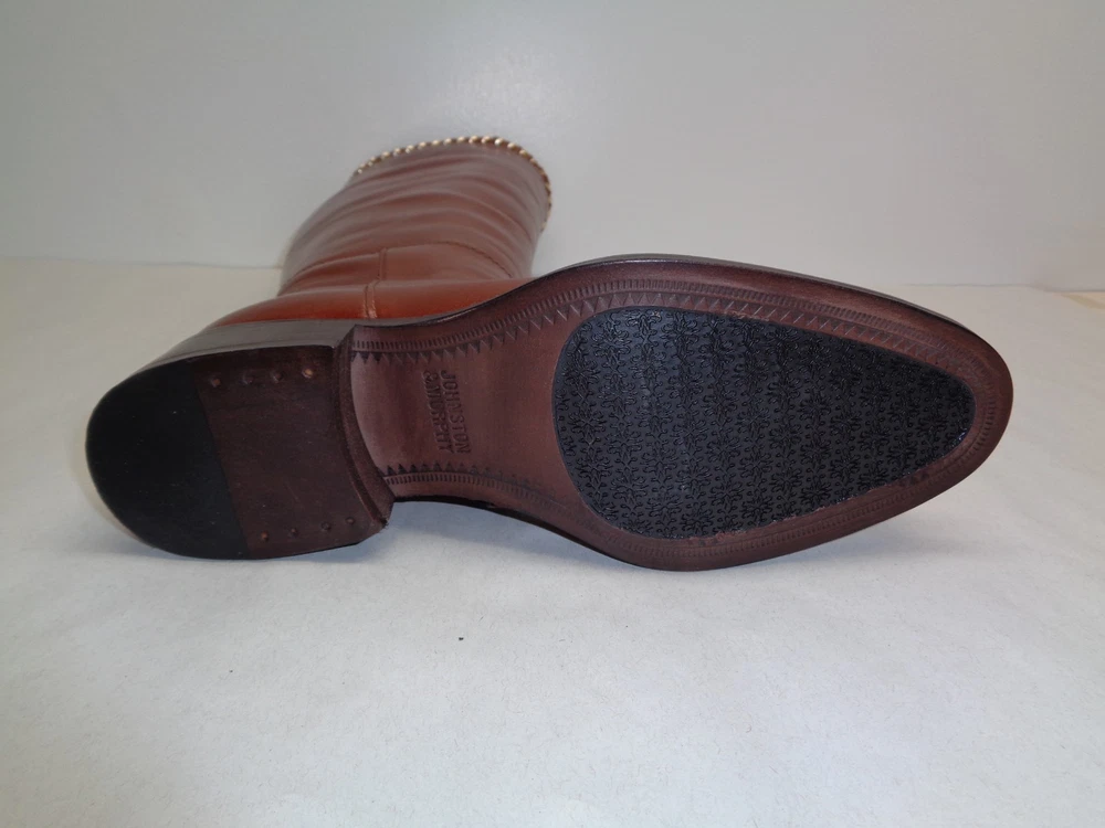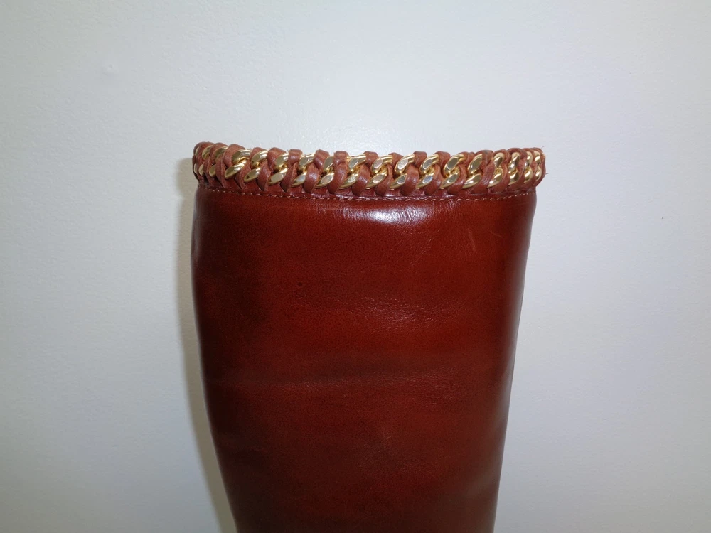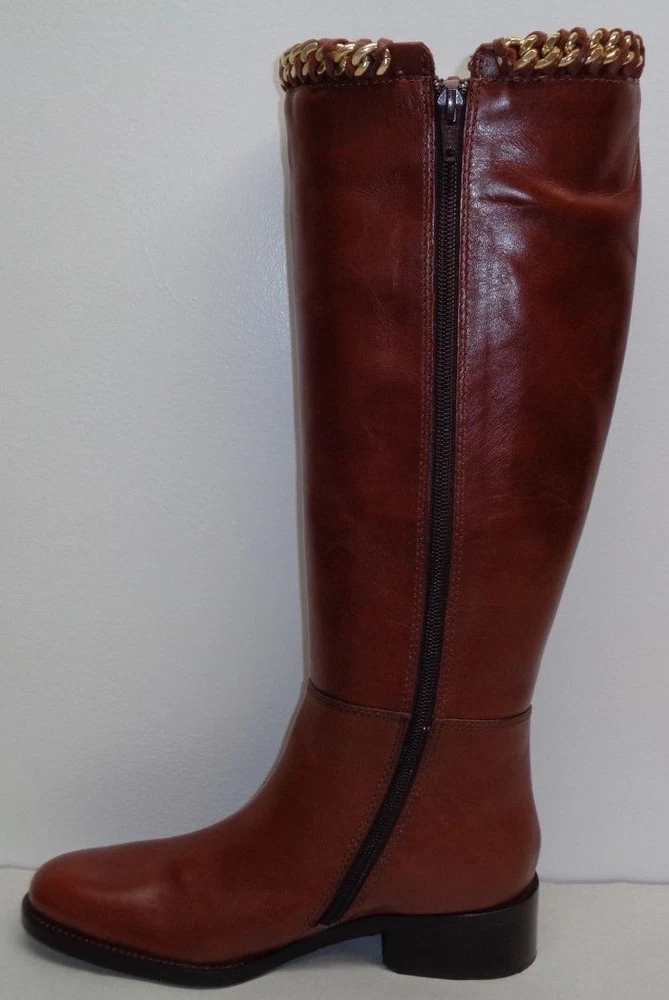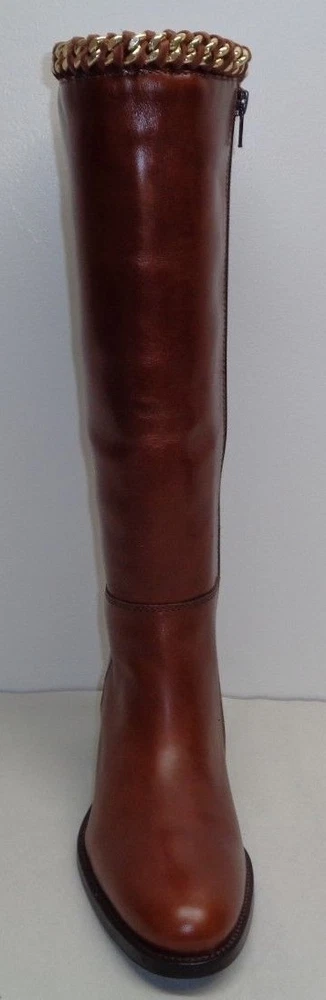 Johnston & Murphy Size 6 M SARI CHAIN Brown Leather Boots New Womens Shoes -Style: SARI, 78-51602 -Color: Roast Calf -Rich leather upper -Leather lining -Leather sole with rubber insert for extra flexibility -Full length inner shaft zipper -Leather and metal chain braiding at collar - Shaft height is approximately 15 inches -Heel height is approximately 1.5 inches -Top to bottom is approximately 16.5 inches -Boot opening is approximately 14.5 inches -Eur 37, JPN 22 and UK 4