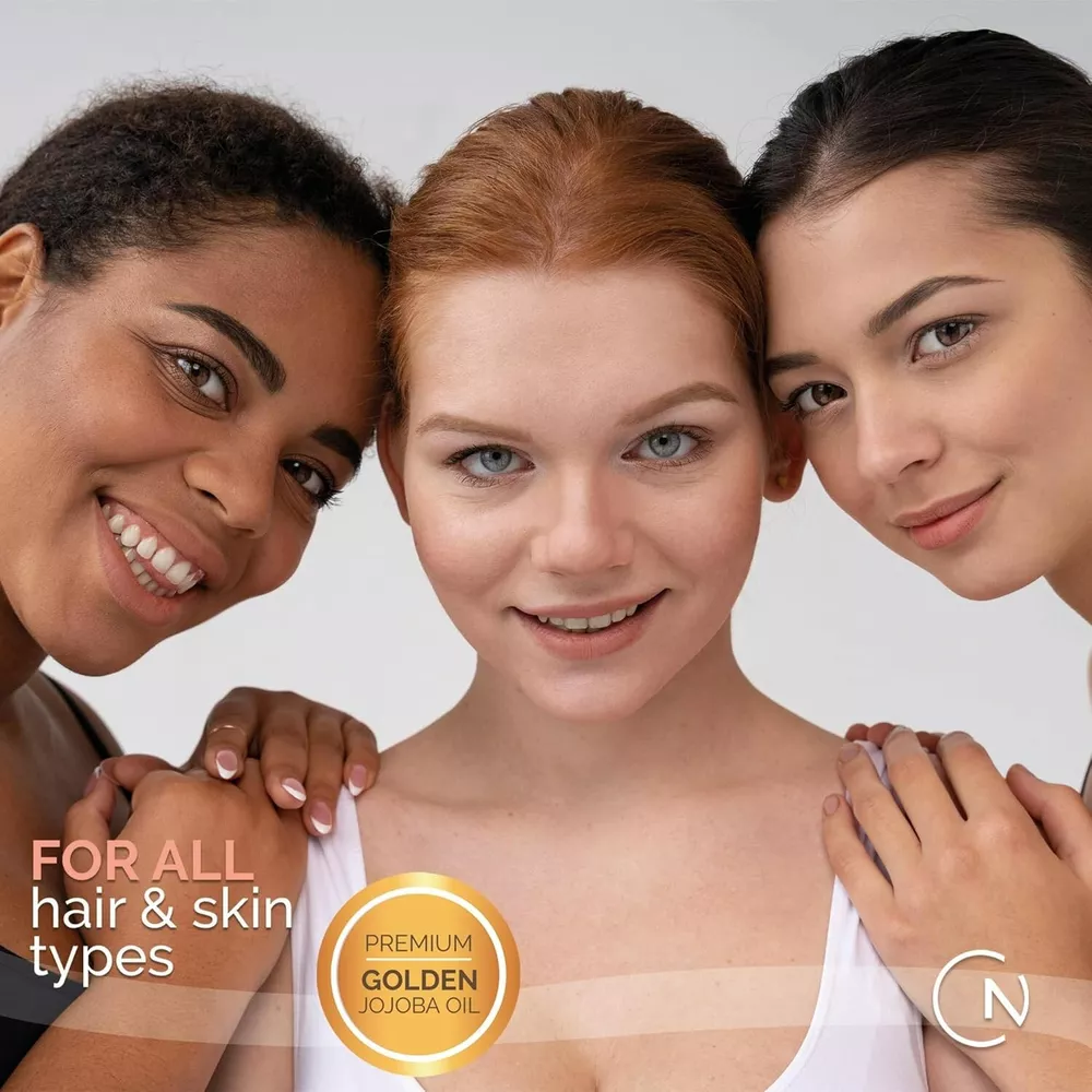 Jojoba Golden Oil 100% Pure & Natural | Cold Pressed | Hexane-Free | For Hair & Skin & Nails, Dermaplaning & Anti-aging 4 Fl. Oz. (118 ml) Glass Bottle | Includes Free Dropper. Brand CLINNATURE Item Volume 4 Fluid Ounces Item dimensions L x W x H 2 x 2 x 4.53 inches Age Range (Description) Adult Special Feature Not Tested On Animals, Travel Size, Aromatherapy, Natural Ingredients About this item ✅ 100% PURE JOJOBA OIL: Our Jojoba Golden Oil is 100% pure, providing the perfect facial oil for dermaplaning and enhancing natural beauty. A jojoba oil perfect for face care, moisturizing and nourishing your skin." ✅ COLD PRESSED AND HEXANE-FREE: Our Jojoba Golden Oil cold pressing process ensures that the oil retains its nutrients. It is hexane-free, unrefined, making it a safe and pure Jojoba Golden Oil for your skin and hair care regimen." ✅ MOISTURIZING & NOURISHING: This skin jojoba oil provides intense hydration, promoting healthier, smoother skin. " ✅ IDEAL FOR DERMAPLANING: This dermaplaning face oil helps create a smooth surface for flawless makeup application. It's also a dermaplaning oil for the face, which helps remove dead skin cells and reveals a youthful glow." ✅ ANTI-AGING FACE OIL: These are the perfect facial oils for facial anti-aging, reducing the appearance of fine lines and wrinkles