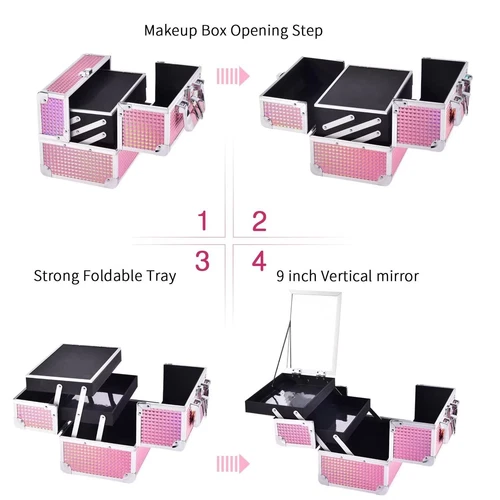 Frenessa Pink Portable Makeup Case Box Cosmetic Organizer