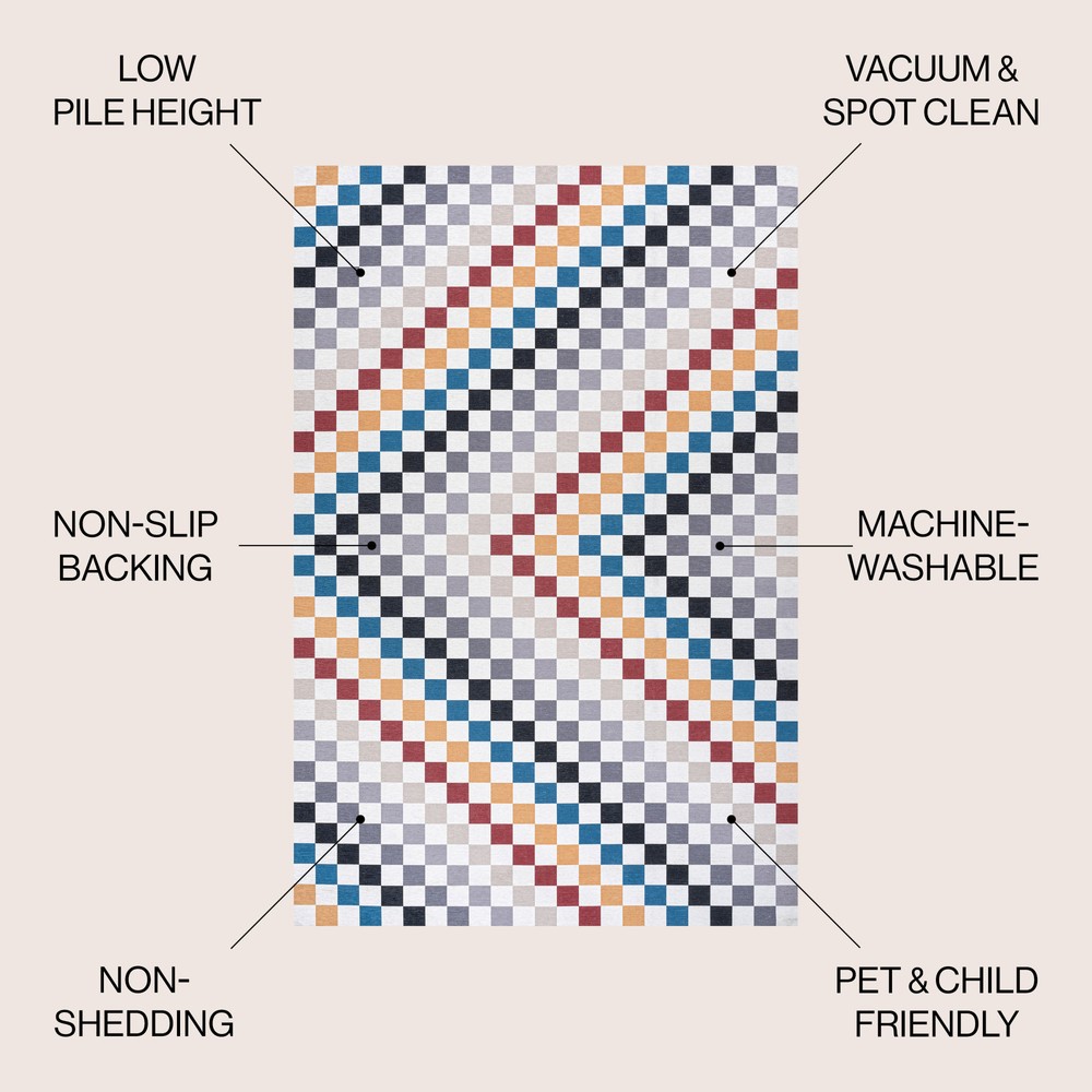 This vibrant rug instantly brightens any room with its playful geometric pattern and soft chenille texture. Perfect for high-traffic areas, it’s both durable and easy to clean—just toss it in the wash! The plush feel underfoot adds cozy comfort, while the cotton backing keeps it from slipping. Ideal for living rooms, kids' spaces, or entryways, it’s a stylish and practical choice that holds up well to daily wear. Love how it brings a cheerful pop of color without being overwhelming!