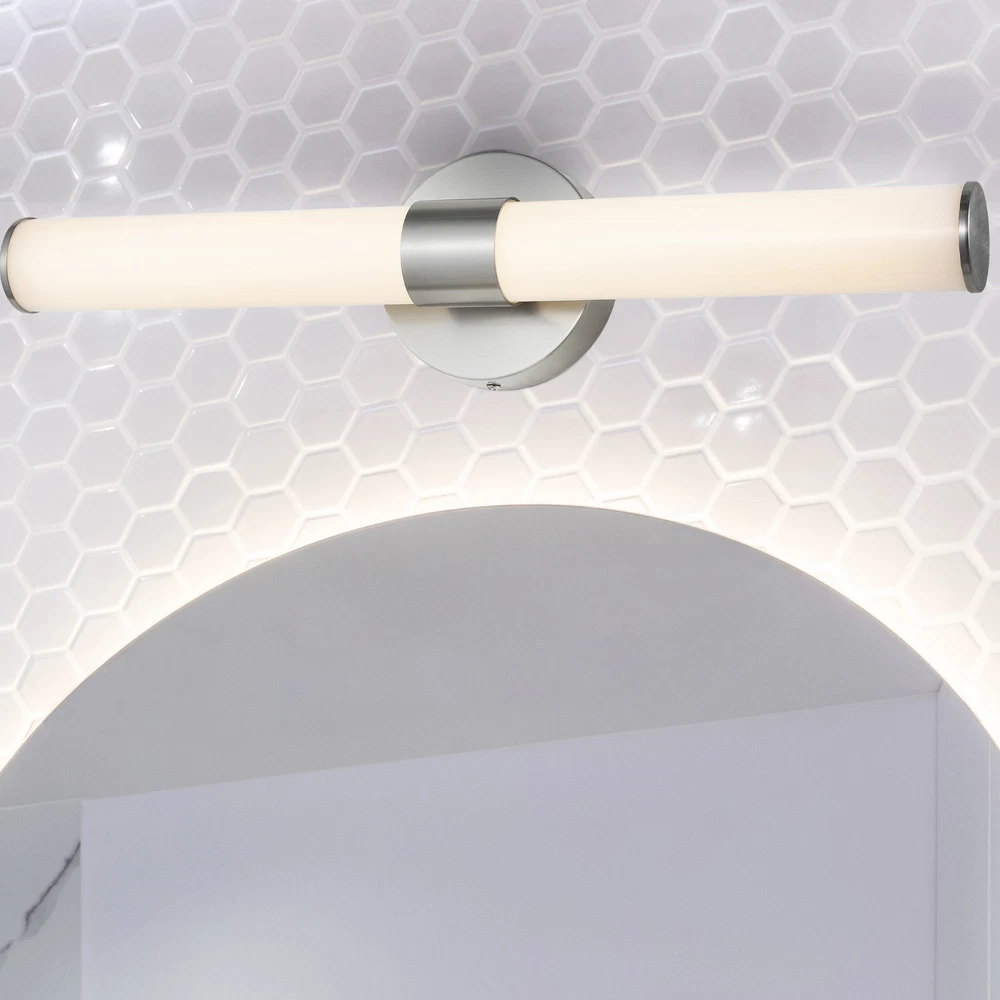This sleek LED bath bar instantly elevates any bathroom with its minimalist mid-century charm. The clean white finish and textured cylindrical shades create a stylish statement while providing bright, even lighting. Perfect for modern or transitional spaces, it's easy to install and works with dimmers for adjustable ambiance. A gorgeous upgrade that blends form and function beautifully!