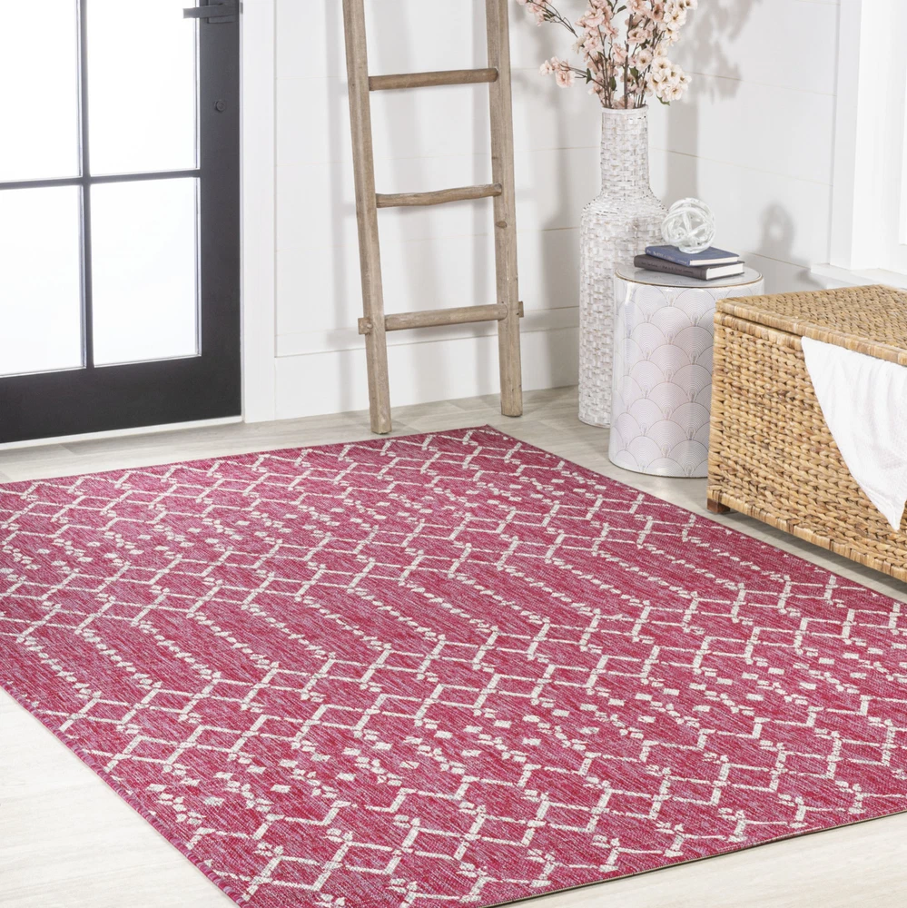 This vibrant rug instantly brightens any space! The bold fuchsia and tribal pattern add a stylish pop to my patio, and the polypropylene material holds up great outdoors—even after rain. Super easy to clean, lightweight, and surprisingly soft underfoot. Love how it ties together my boho decor while being durable for daily use. Perfect indoor/outdoor versatility!