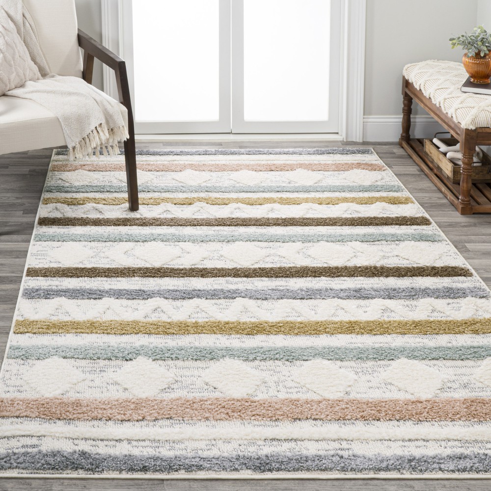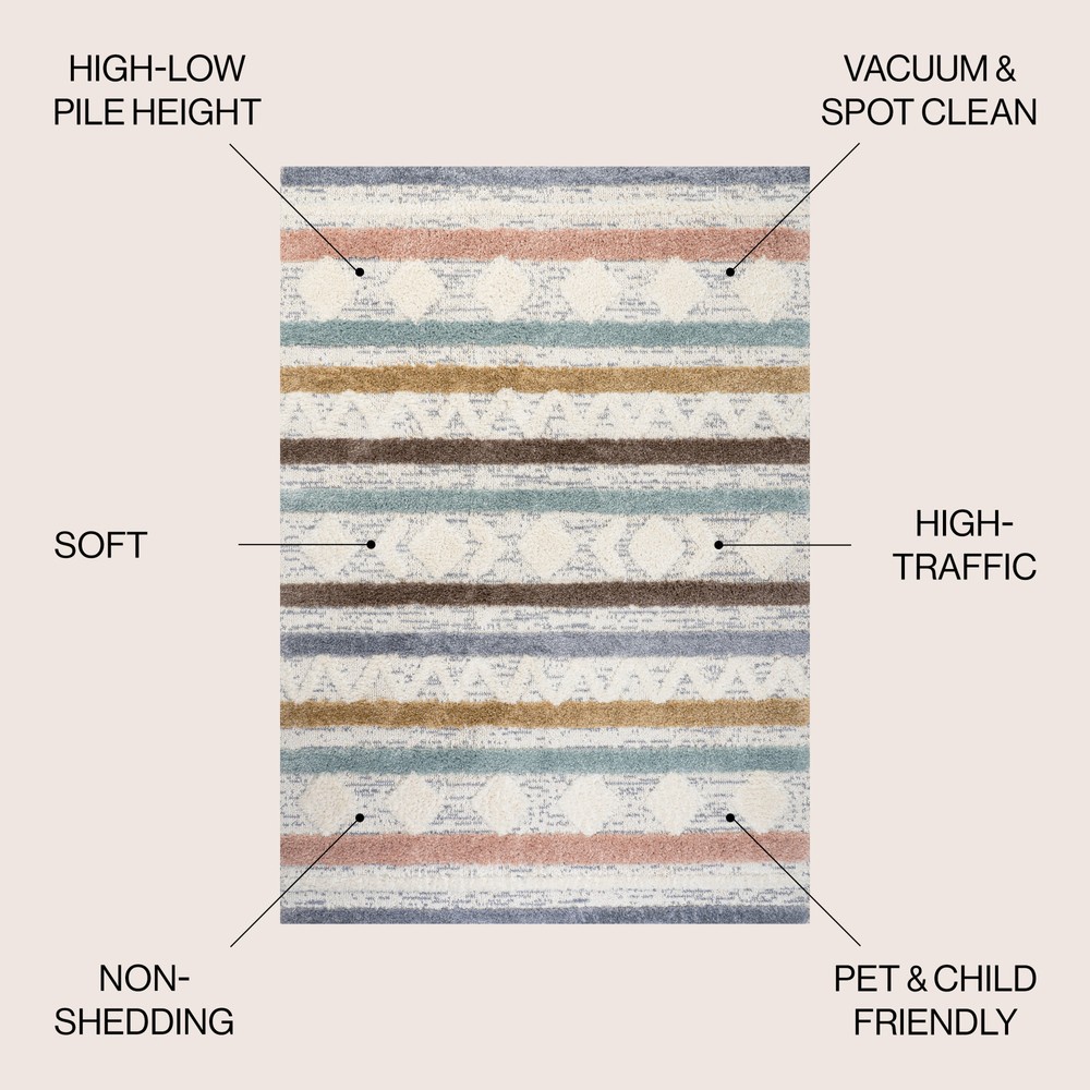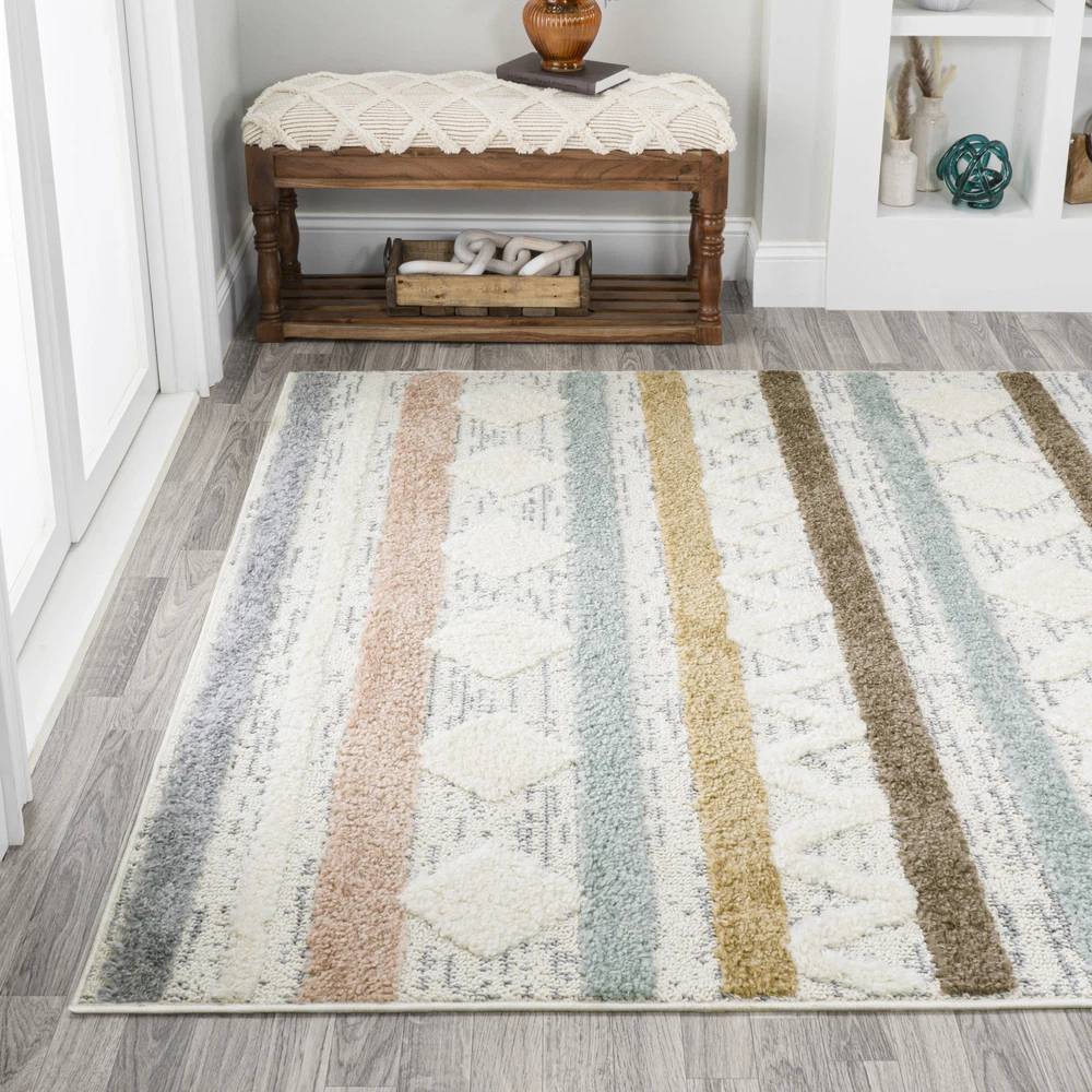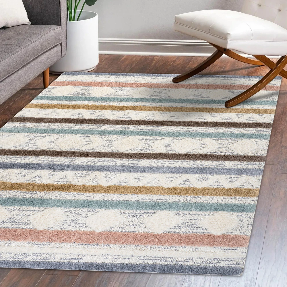 Absolutely love this rug! The mix of boho patterns and soft pastel colors adds such a cozy, stylish vibe to my living room. The dual pile heights give it amazing texture, and it’s super plush underfoot. Super easy to clean, too—perfect for high-traffic areas. The size is just right, and the quality feels premium. A total game-changer for any space!