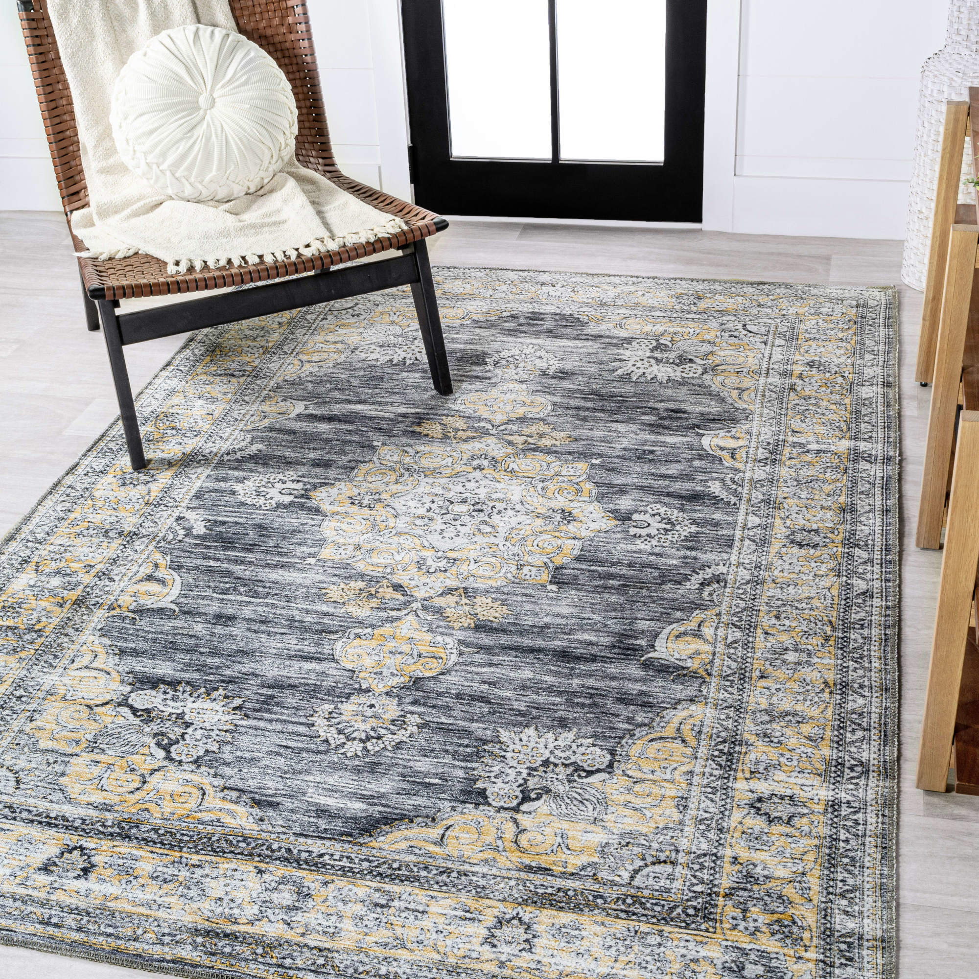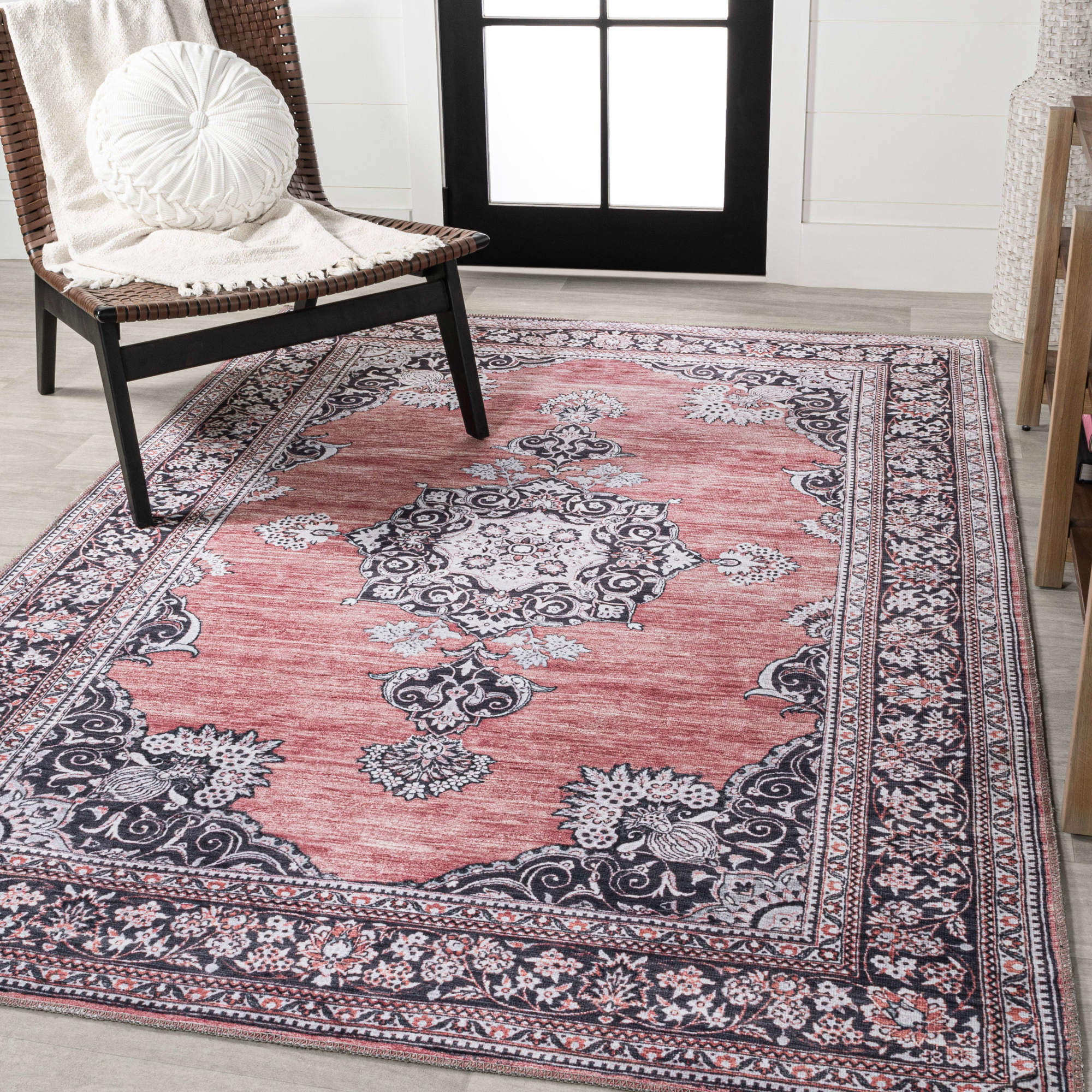 I absolutely love this rug! The distressed medallion design adds a cozy boho vibe to my living room, and the chenille feels soft underfoot. It stays perfectly in place thanks to the non-slip backing, and I was thrilled to find out it's machine washable—so convenient! The thickness is just right, giving comfort without being bulky. Perfect for high-traffic areas since it holds up well. A stylish and practical choice!