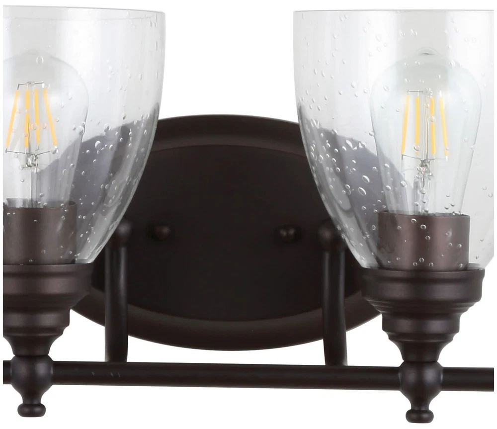 This vanity light is absolutely stunning! The vintage Edison bulbs give off a warm, inviting glow, and the seedy glass shades add a touch of elegance. Installation was easy, and the build quality feels solid. Perfect for bathrooms—bright yet stylish. Love that it meets energy standards too! Highly recommend.