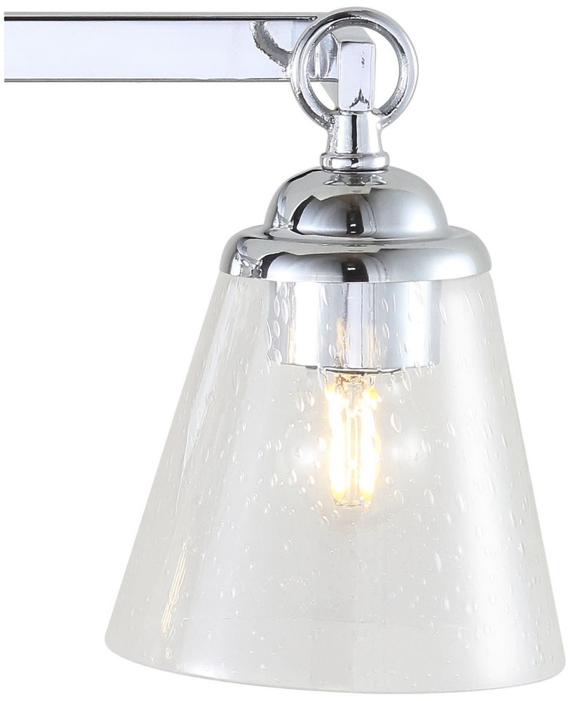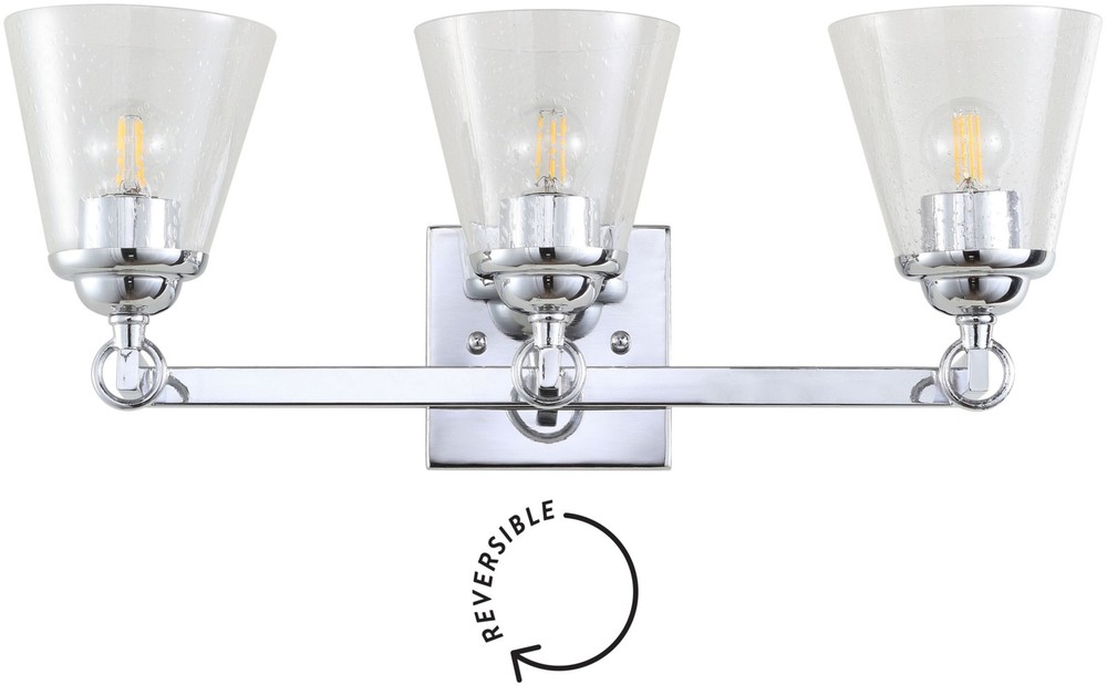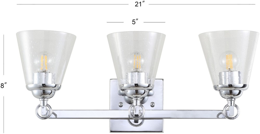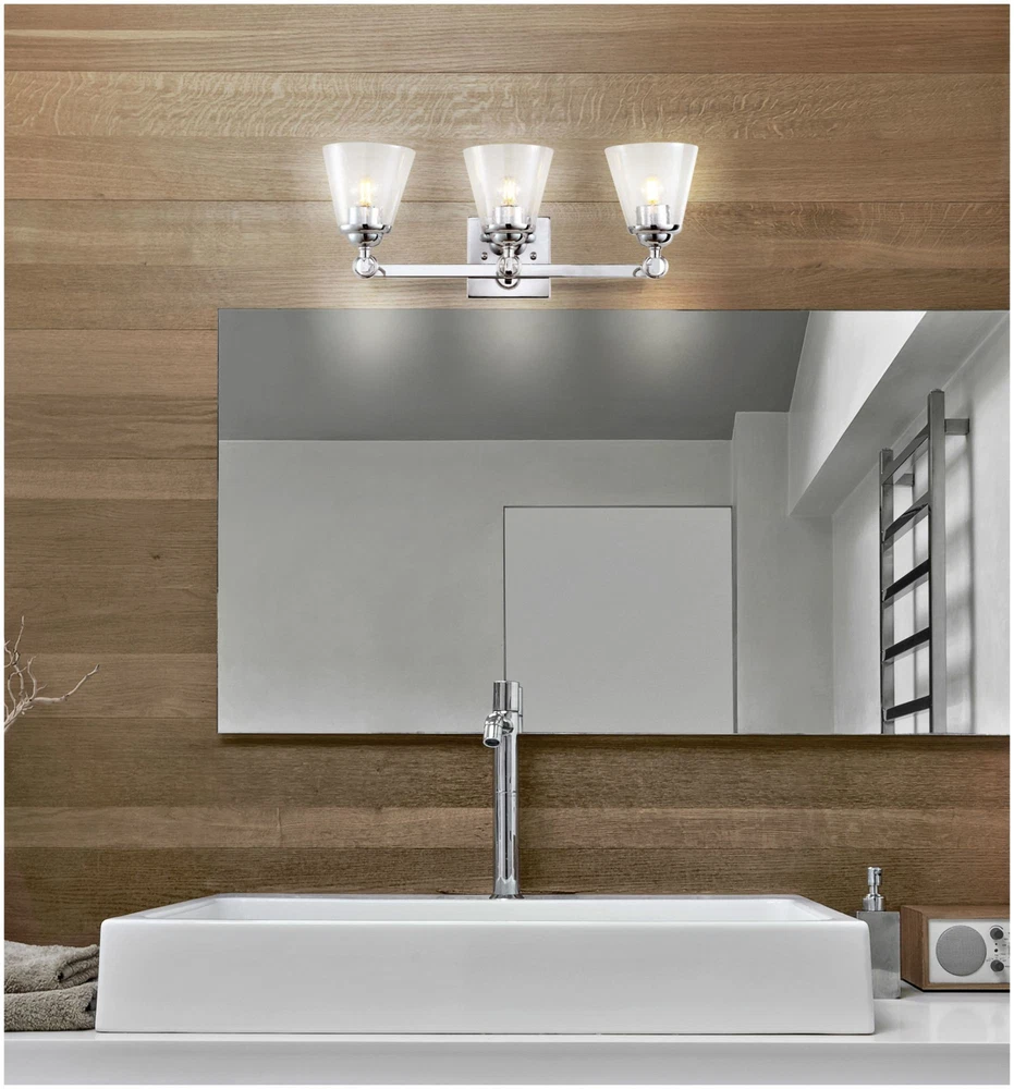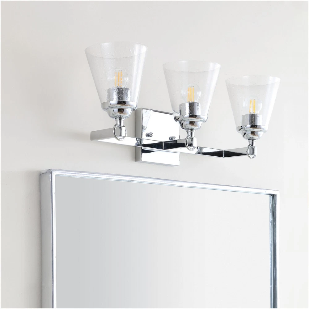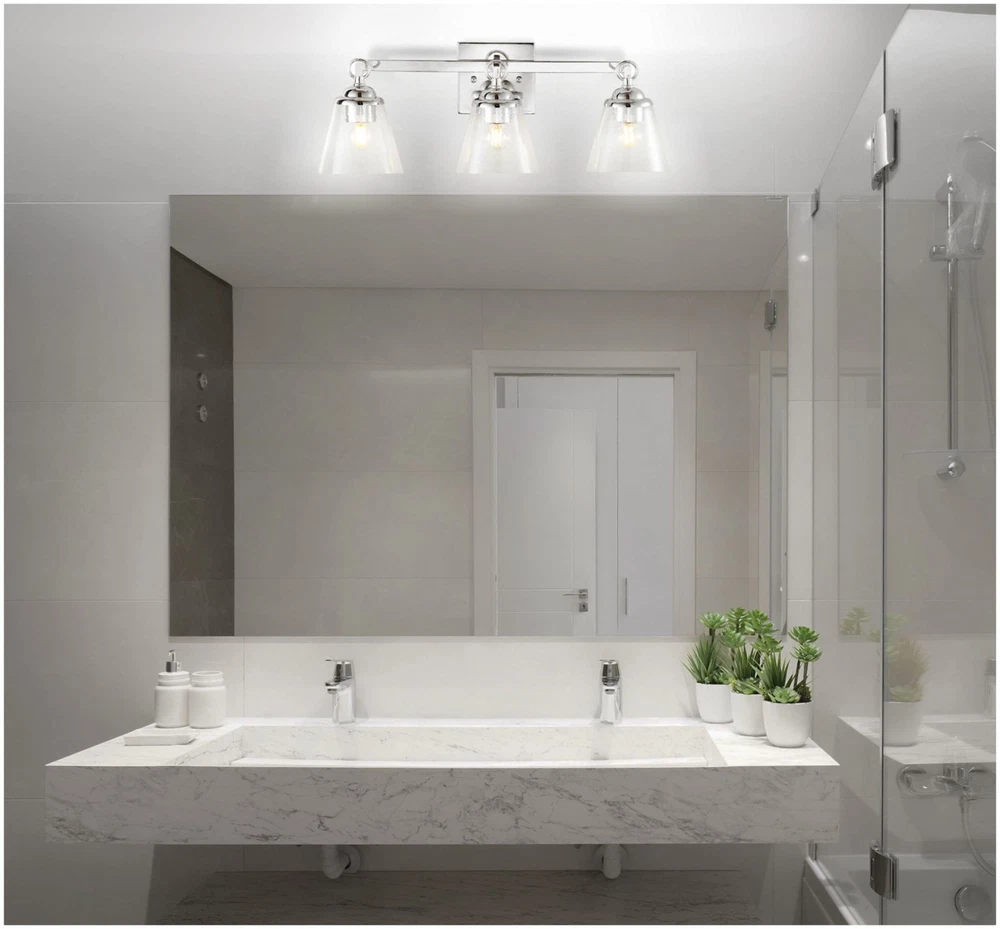 This vanity light is sleek and modern—perfect for upgrading any bathroom! The chrome finish adds a stylish touch, and the three bubble-glass shades give off just the right amount of warm, inviting light. Easy to install, and I love that it works with dimmable bulbs for adjustable brightness. Plus, it fits perfectly over my 21-inch sink. Durable metal construction and ETL damp location rating make it a great long-term choice. Highly recommend!