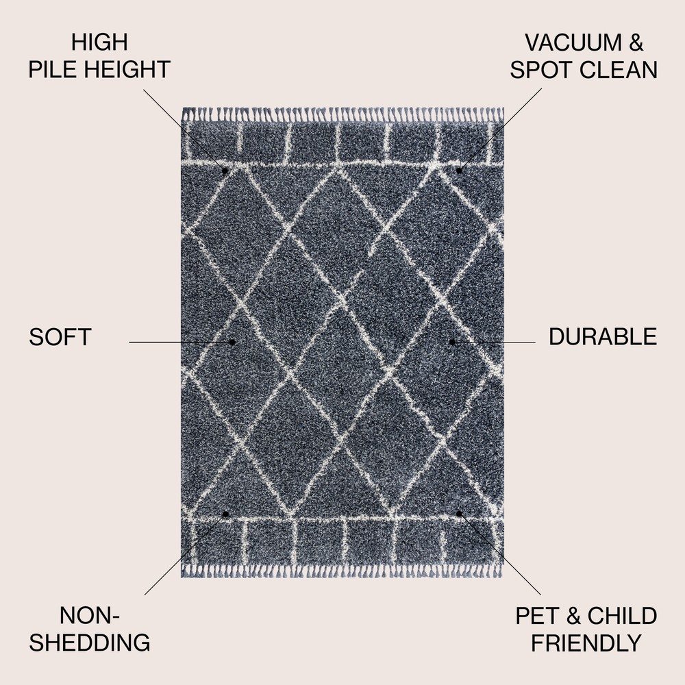 This Moroccan-style rug is a gorgeous blend of denim blue and cream, adding a cozy yet stylish touch to any room. The plush 2" pile feels incredibly soft underfoot, and the vintage geometric pattern gives it a chic, boho vibe. Perfect for light traffic areas, it’s durable, easy to clean, and brings a pop of texture to your space. Love how it elevates my decor effortlessly!