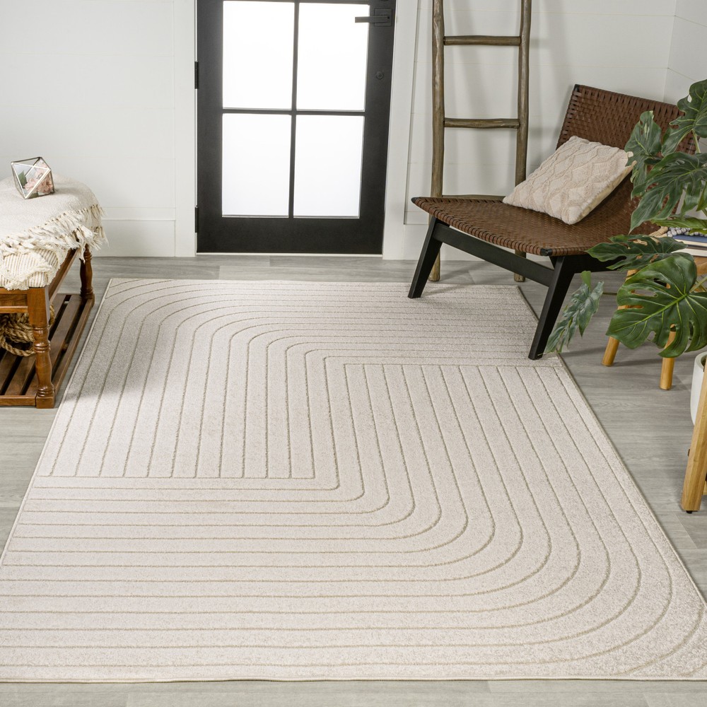 Love this rug! The clean, modern design adds a stylish touch to my living room. The high-low pile makes the geometric pattern pop, and it’s surprisingly soft underfoot. Perfect for indoor or outdoor use—super easy to clean, even with kids running around. The neutral tones blend well with any decor. Highly recommend for durability and design!