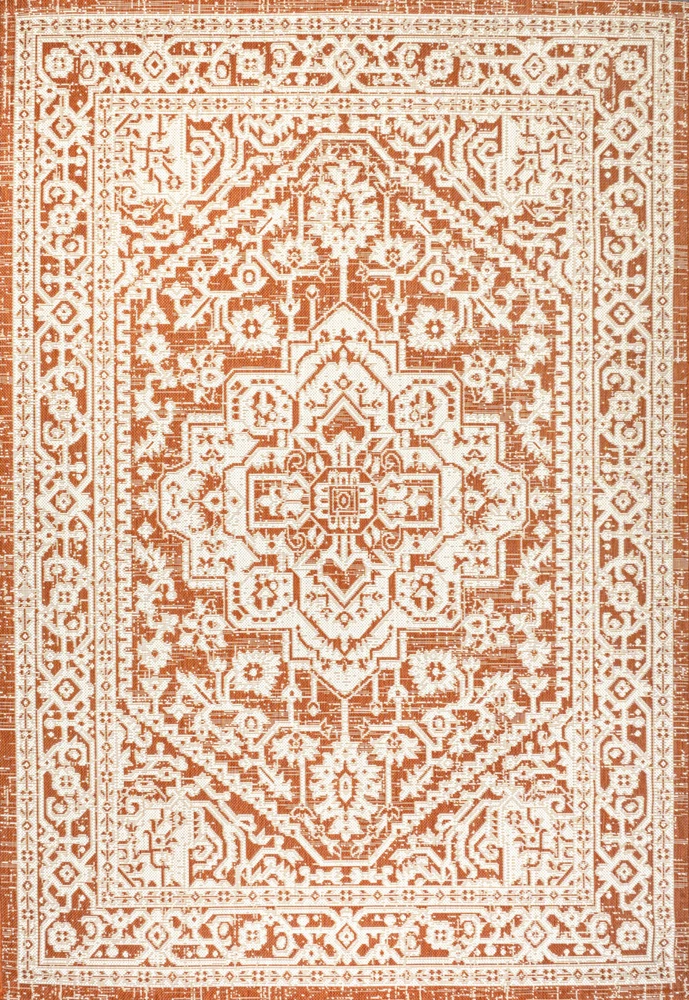 Absolutely love this rug! The vibrant orange and cream design adds a stylish, exotic touch to my patio. It feels durable yet soft underfoot, and the water resistance is perfect for outdoor use. The vintage handwoven look gives it unique character, blending well in high-traffic indoor spaces too. Definitely a great buy!