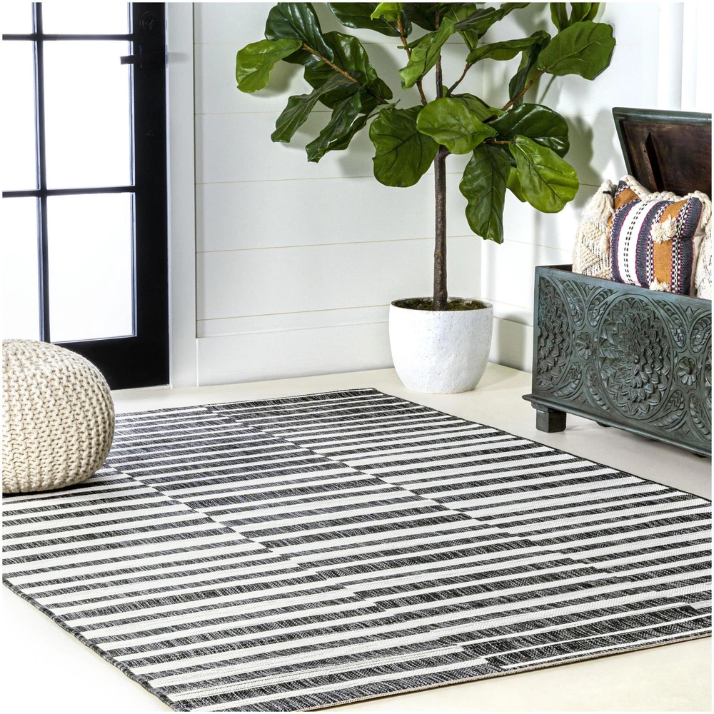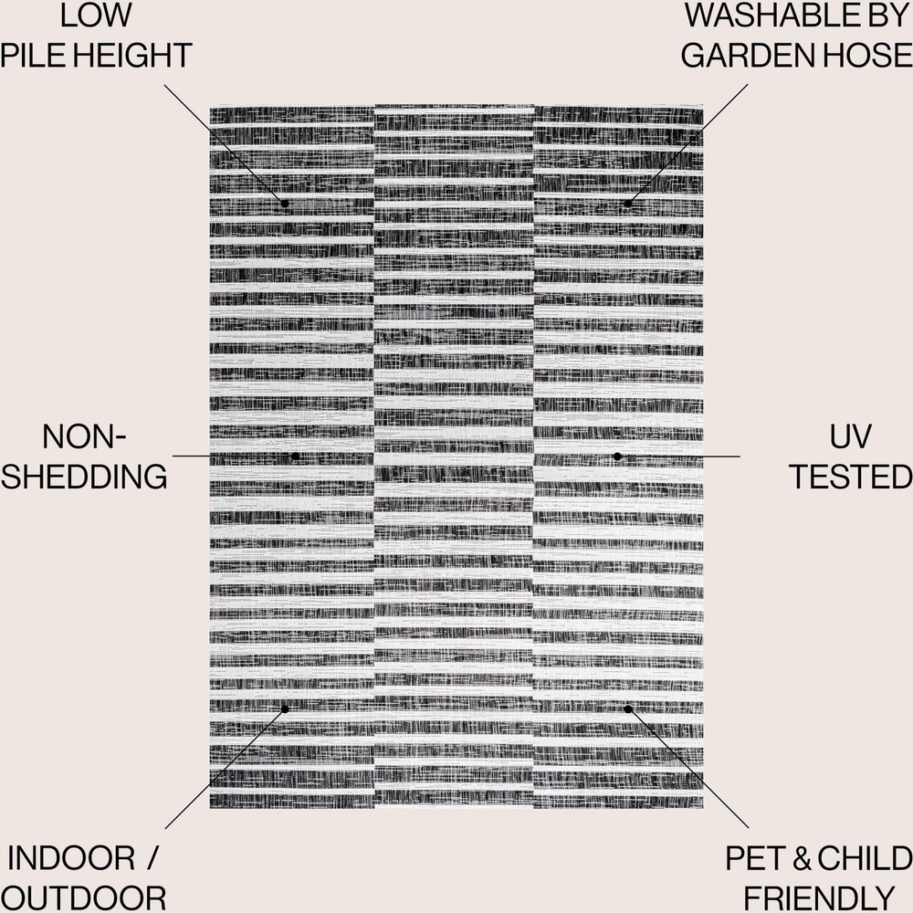 This rug is a fantastic blend of style and practicality. The soft polypropylene material feels great underfoot and the off-white striped design adds a chic, mid-century vibe to any space. It’s perfect for indoor or outdoor use, and the low pile makes it easy to clean. Love how it elevates my living room while still being durable!