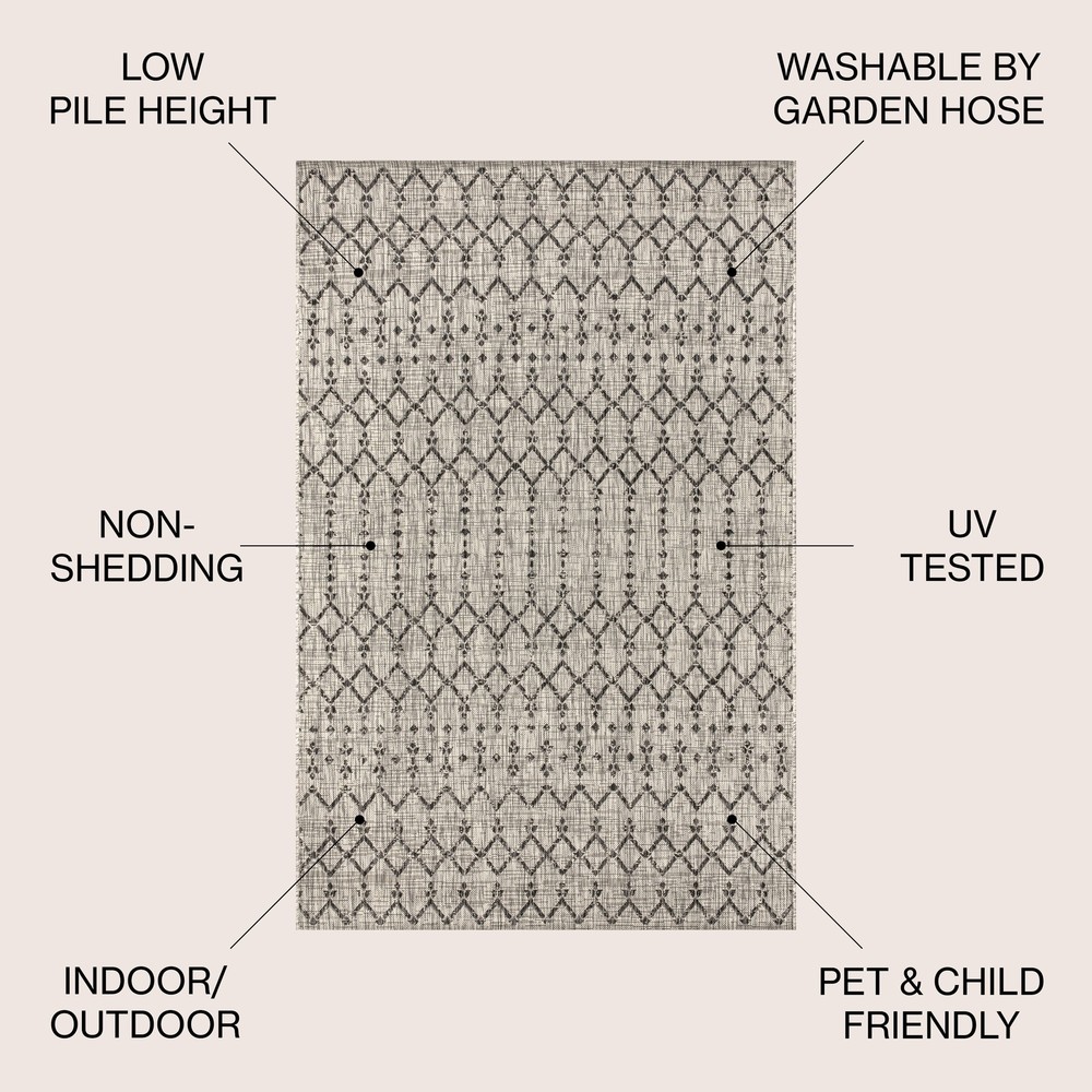 This rug instantly elevates my outdoor space with its gorgeous Moroccan-inspired design! The light gray and black geometric pattern adds just the right amount of vintage charm to my patio. I love how durable and easy to clean it is—perfect for high traffic areas. The quality is impressive, especially for the price, and it feels surprisingly soft underfoot. It's held up beautifully against weather and foot traffic while maintaining its vibrant colors. The perfect blend of style and function for any outdoor area!