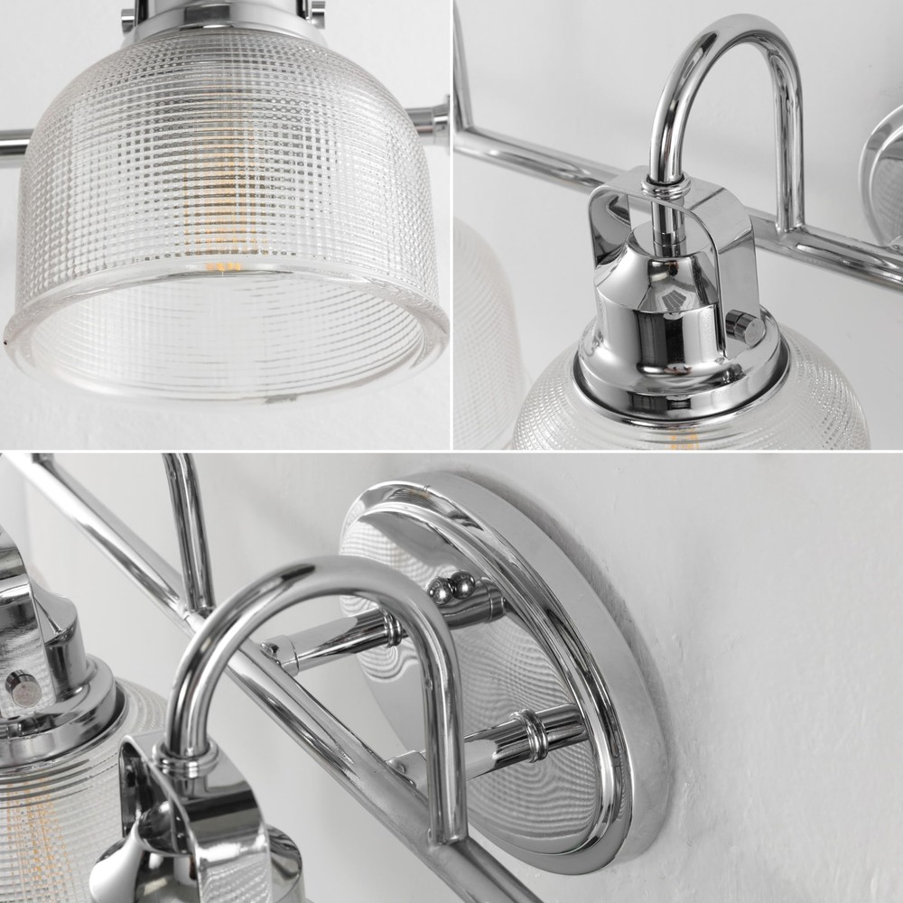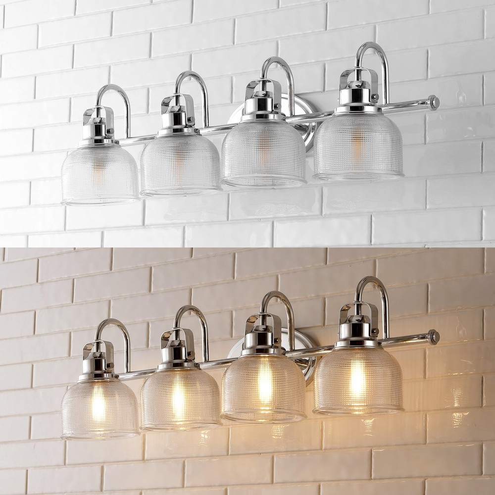 JONATHAN Y JYL7902A Virginia 30" 4-Light Metal/Glass LED Vanity Light Traditional, Classic, Living Room, Dining Room, Bedroom, Bathroom, Chrome Technical Details Brand JONATHAN Y Color Chrome Material Glass, Iron, Metal Style Traditional;Classic Light fixture form Vanity Room Type Bathroom, Bedroom, Living Room, Dining Room, Kitchen, Kids, Nursery, Bathroom, Home Office Product Dimensions 30"L x 9"W x 9"H Specific Uses For Product Home Indoor/Outdoor Usage Indoor Power Source Corded Electric Installation Type Vanity Light Special Feature Dimmable, Corded, Water Resistant Light Source Type LED Shade Material Glass Number of Light Sources 4 Voltage 157 Volts Light Color Soft White Shape Bell Included Components Bulb, Lighting Fixture, Shade Lighting Method Downlight Specification Met ETL Item Weight 3.8 Pounds Number of Items 1 Wattage 40 watts Bulb Base E26 Controller Type Push Button Switch Type Push Button Unit Count 1.0 Count Water Resistance Level Water Resistant Brightness 420 Lumen Mounting Type Wall Mount Shade Color Clear Fixture Type Non Removable Assembly Required Yes Manufacturer JONATHAN Y UPC 196868051046 Recommended Uses For Product Lighting, Indoor Model Name Virginia 30" 4-Light Metal/Glass LED Vanity Light Item Weight 3.75 pounds Country of Origin China Item model number JYL7902A Size 4 Light Item Package Quantity 1 Special Features Dimmable, Corded, Water Resistant QUALITY CONSTRUCTION: Wall light fixtures are used as general lighting; Available in amazing variety; Replacing old, outdated wall lights is a fast and affordable way to update your home design ENERGY-SAVING LED BULBS INCLUDED: LED bulbs are included with every light fixture; All of our lighting is ETL Listed and meets 120-volt UL standards for safety and quality; Professional installation is recommended for all wall light fixtures SATISFACTION GUARANTEED: Every JONATHAN Y design is created with uncompromising attention to detail, using only the highest quality components; Based in Soho, New York, designer Jonathan and his talented team create affordable high-end home decor Textured glass and polished chrome come together to create a chic, classic combination for this bathroom light Takes four bulbs and compatible with any 9W LED or 40W Type "A" or 13W CFL With a hint of texture on the glass shade to blur the glare of the bulb, this elegant sconce is perfect for a bathroom or vanity setting that calls for bright, but not harsh, light. On either side of a mirror, you'll find this stylish piece the perfect addition to your morning makeup routine, as it is compatible with a variety of bulbs. Also versatile within any style of decor, we particularly love seeing these in bathrooms and kitchens, where the arch of the light's arm is reminiscent of the curve of a beautiful faucet. Shipping We offer FREE shipping on all orders! We ship within Three business days of payment, usually sooner. We use a selection of shipping services such as UPS, FedEx, USPS etc. We only ship to the lower 48 states, no APO/FPO addresses or PO Boxes allowed. Local pickups and combined shipping options are not provided at this time. Return You can return a product for up to 30 days from the date you purchased it. Any product you return must be in the same condition you received it and in the original packaging. Please keep the receipt. Payment We accept payment by any of the following methods: PayPal Please pay as soon as possible after winning an auction, as that will allow us to post your item to you sooner! Feedback Customer satisfaction is very important to us. If you have any problem with your order, please contact us and we will do our best to make you satisfied. Contact Us If you have any queries, please contact us via ebay. We usually respond within 24 hours on weekdays. Please visit our eBay store to check out other items for sale! Thank you for shopping at our store.