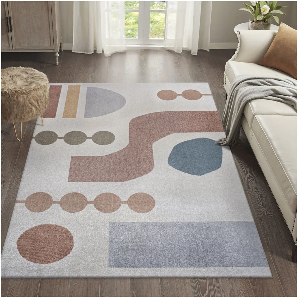 This rug is a game-changer for busy homes! The soft polyester feels great underfoot, and the stylish abstract design adds a modern touch to any space. What I love most is how easy it is to clean—spills and messes wipe right off, making it perfect for kids and pets. The neutral off-white shade fits effortlessly with different decor styles. Plus, the perfect size for layering or filling a room. Highly recommend for anyone needing a durable, good-looking rug that can handle real life!