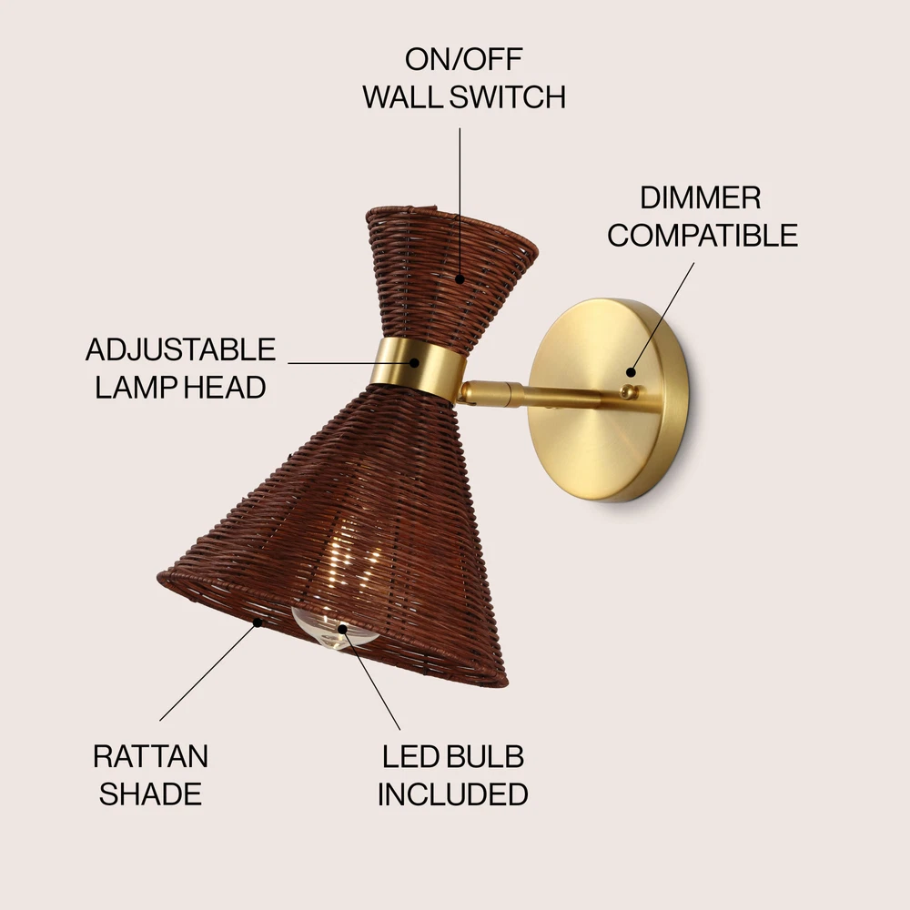 Absolutely love this sconce! The brass and wicker combo gives such a stylish retro-modern look, and the warm LED light is perfect for setting a cozy mood. It’s sturdy, well-made, and adds instant charm to any space—great by a mirror or as bedside lighting. A fantastic blend of form and function!