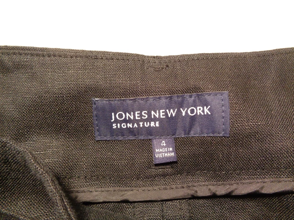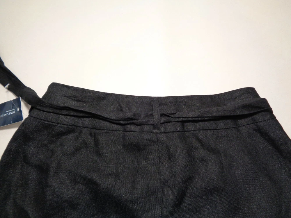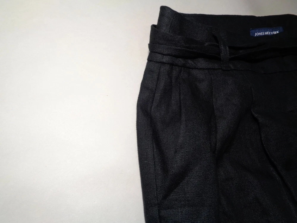 Jones New York Size 4 Black Linen New Women's Pleated Pants Color: Black 100% Linen Pleated front 2 front pockets Left hip zip closure(8 inch length) Removable belt Belt loops Cuffed hem Machine Washable Waist approximately 30 inches Rise approximately 12 inches Inseam approximately 25 inches