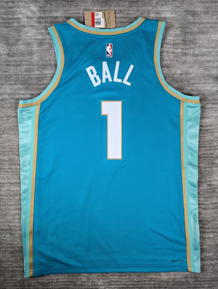 League:National Basketball Association (NBA)Team:Charlotte HornetsPlayer:LaMelo BallSize:LCountry/Region of Manufacture:JerseyBrand:NikeGender:MenColor:TealProduct:JerseySport:BasketballOfficially Licensed:Yes