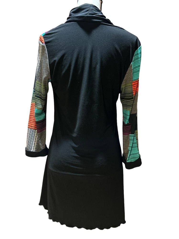 This Joseph Ribkoff dress/tunic in a size 10 is the perfect addition to your wardrobe. The multicolored color block pattern is fun and vibrant, while the long sleeves and short length make it versatile for any occasion. The soft style and colorful theme make this piece a standout item that you'll love to wear. The item is pre-owned, but in excellent condition. It has been well-maintained and cared for, so you can be sure that you are getting a quality piece. Don't miss out on this opportunity to add a stylish and unique dress/tunic to your collection. The material/care tag is missing. Unsure of material. Very soft with some stretch. Would pair beautifully with a pair of leggings! Measurements Chest: armpit to armpit 17” Length: shoulder to end 29” Shoulder seam to seam: 15”