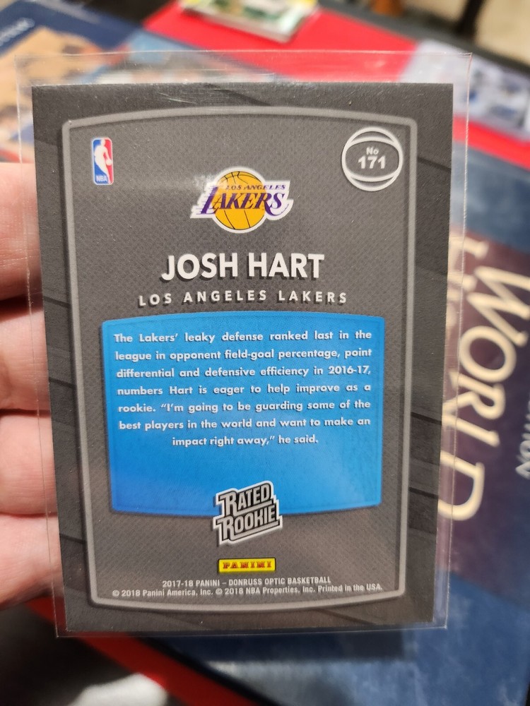 Number of Cards:5Year Manufactured:2017Sport:BasketballVintage:NoLeague:National Basketball Association (NBA)Original/Licensed Reprint:OriginalFeatures:Parallel, RookieSet:2017-18 Panini Donruss OpticManufacturer:PaniniPlayer/Athlete:Josh HartSeason:2017-18Team:Los Angeles Lakers, New Orleans Pelicans, New York Knicks, Portland Trail BlazersType:Sports Trading Card