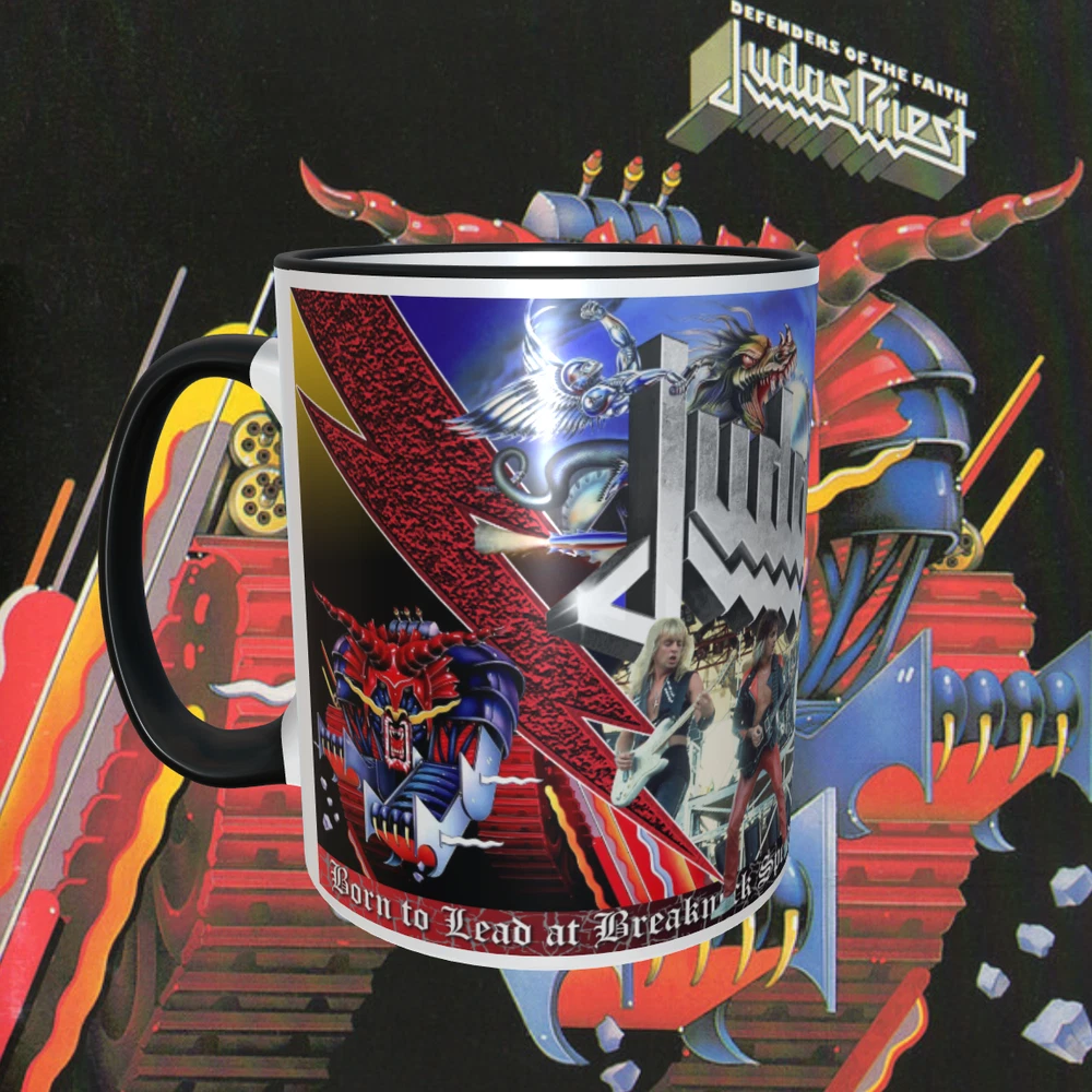 Judas Priest 1 1oz Mug NEW Dishwasher Safe , Handle and inside are Black NEW Dishwasher Safe Shipped with USPS
