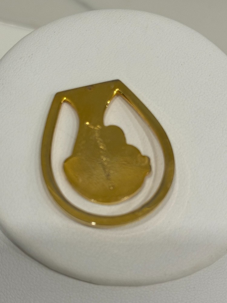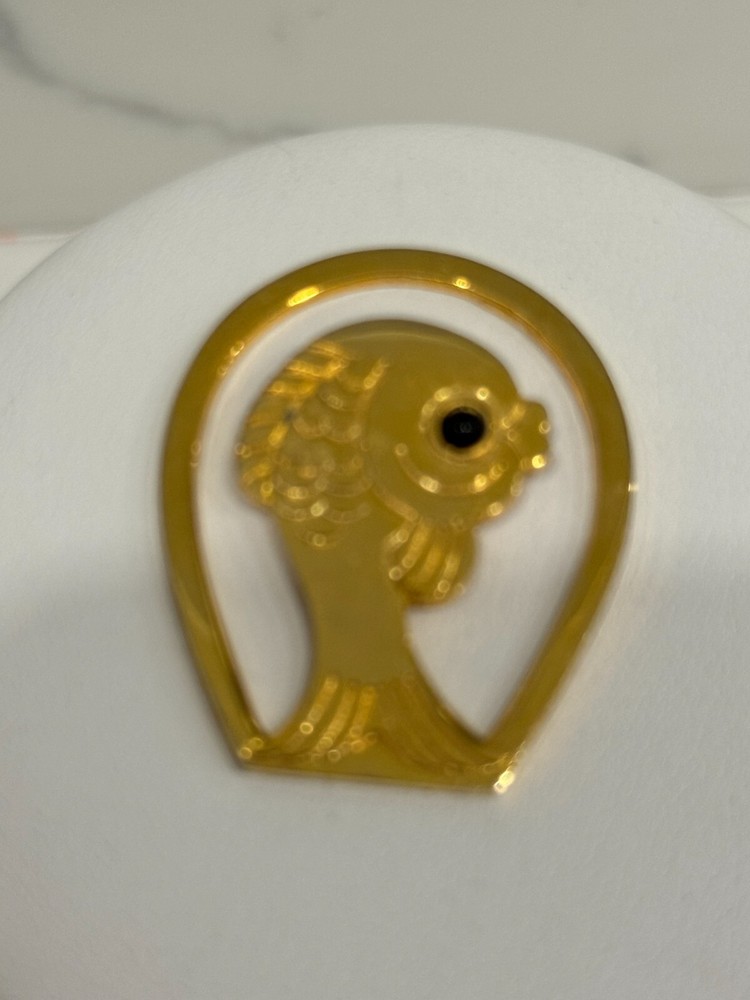This Judith Leiber bookmark is a must-have for any fashion-forward woman. The gold tone metal etched design features a beautiful fish and money clip, perfect for marking your page and keeping your place. The black eye adds a touch of mystery to this stunning accessory, making it a unique addition to your collection. Made in the United States, this bookmark is a high-quality piece that will last for years to come. Add a touch of elegance to your reading experience with this stunning Judith Leiber bookmark.
