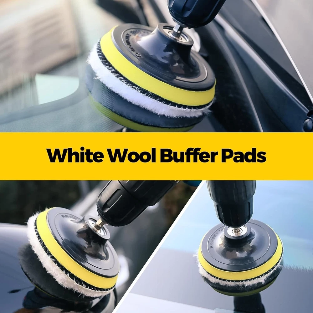 Juego De 23 Cepillos De Taladro Para Limpieza Kit De Esponja Color Amarillo NEW. Juego de accesorios de limpieza de taladro de 23 piezas y juego de accesorios de pulido con pulidora, incluye: 8 formas de cepillos de fregado de potencia de taladro medio, 9 estropajos de diferentes rigideces, 3 estropajos de esponja para pulir y 1 estropajo de lana blanca y respaldo de 4 pulgadas y 1 varilla de extensión. (EL TALADRO NO ESTÁ INCLUIDO) 8 formas de cepillos limpian su bañera, lechada, tapicería, superficie del baño, piso, azulejos, ducha, inodoro y alfombra, etc., las cerdas de nailon no rayarán las superficies de ellos. Estropajos de 9 piezas: perfectos para limpiar la cocina, el horno, la estufa, la placa de cocina, el fregadero, la sartén de hierro fundido, las ollas y las sartenes. 3 estropajos de esponja para pulir y 1 estropajo de lana blanca: se utilizan para encerar, pulir y sellar todo tipo de pinturas de capa, para limpiar y mejorar su ligereza; y para pulir los detalles del automóvil. Sistema profesional de pulido, pulido y acabado con almohadillas de espuma y lana. Corte y pulido eficientes de la capa de oxidación y los rayones más difíciles de los automóviles Instrucciones de instalación de la almohadilla: Instale una almohadilla en el respaldo y luego conecte el respaldo al taladro para usarlo ¡Atención! Consejo sobre el tamaño del producto: El diámetro de la biela que conecta el taladro es de 1/4 de pulgada. Antes de comprar, verifique si el taladro se ajusta a este tamaño (si no verifica el tamaño del taladro, puede haber una discrepancia). Si el producto no es adecuado para el taladro, comuníquese con nuestro servicio de atención al cliente a tiempo para organizar las devoluciones; admitimos todas las devoluciones no adecuadas. Se recomienda usar con otros productos de limpieza para obtener mejores resultados.
