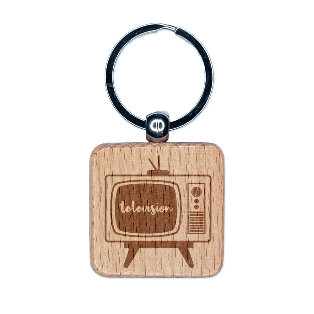 Juego de TV de Colección Retro Televisión Grabada Madera Cuadrada Llavero Etiqueta Dije