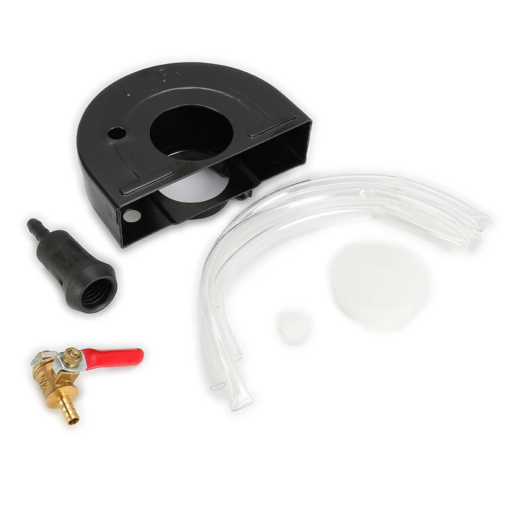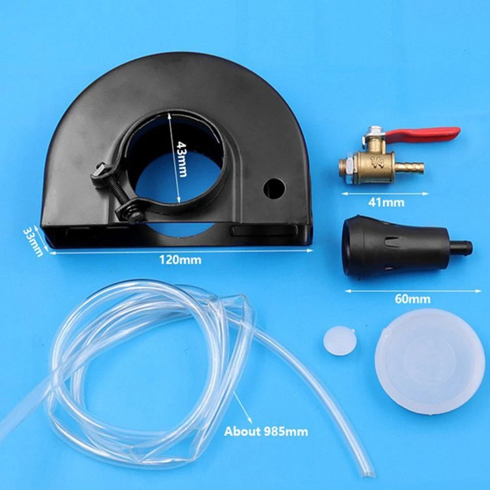 Angle Grinder Shield Set Water Cutting Machine Base Safety Cover With Water Pump DESCRIPTION Features: * brand new and high quality. *Made of high quality material, and practical to use. *for 360-degree comprehensive protection, waterproof and dustproof, away from dust. *Two sealing cap make it easy to use. *There are holes on both sides so you can easily add water. *Easy to install and remove.Can be mounted on an angle grinder. *This product can be used to add water during slitting and cutting. *The dual face design makes it more efficient and easier to use. *Suitable for angle grinders. Also, you can easily use the hose conversion head. Specifications: *Color: Black(As pictures show) *Main Material: Carbon Steel *Size: 120MM*43MM(Dia*Inner dia)(Approx) *Width: 30mm(Approx) *Thickness: 1.7mm(approx) Package Contents: 1*Protective cover 2*Waterproof covers 1*Water pipe conversion head 1*Water pipe 1*Copper faucet Note: 1.The real color of the item may be slightly different from the pictures shown on website caused by many factors such as brightness of your monitor and light brightness. 2.Please allow slight manual measurement deviation for the data. POLICES Shipping Payment WARRANTY We only ship to confirmed ebay Order addresses. Please comfirm that your Order address is in line with your shipping address. Please kindly note that the c ombined shipping is not provided because the shipping fee is calculated by weight. Also, the each additional item means exactly the the same color and size. It takes about 7 -15 working days to US; about 10-30 working days to other countries. Transit time may be a little delayed because of the bad weather and customs inspection . If you do not receive your item within 30 working days since payment finished, please contact us immediately for further assistance. Payment must be completed within 5 days. If you have any problems about payment, please contact us via ebay message. We strive for 100% customer satisfaction! Positive Feedback is very important to us. If you have any questions, p lease feel free to contact us via "Ask seller a question" . We will reply your email within 24 working hours.
