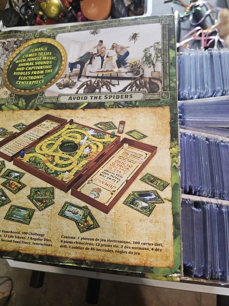*PLEASE LOOK AT PHOTOS FOR CONDITION OF BOX. THIS IS BRAND NEWBOX ISNT BAD BUT NOT PERFECT. The Jumanji Deluxe Electronic Adventure Game is a board game by Spin Master released in 2021. Designed for 2 players or more, it features automatic/electronic gameplay with lights and sounds. The game is themed around animals and the Jumanji franchise, suitable for boys and girls aged 8 and up. It includes a giant game version and has received the Games 100 award.