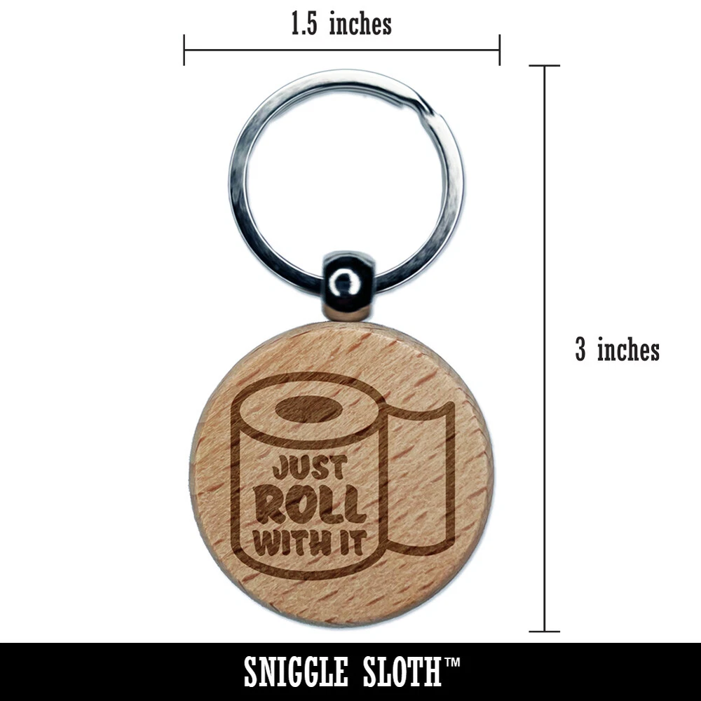 Just Roll with it Toilet Paper Engraved Wood Round Keychain Tag Charm