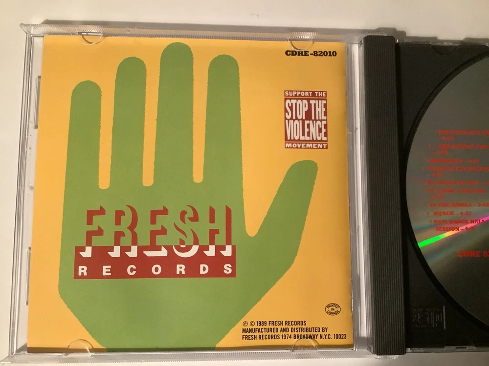 Hard to find original gangster of hip hop Just-Ice 3rd album The Desolate One CD original Fresh records pressing from 1989 featuring production by KRS One, D Nice and DJ Doc. CD, inserts and jewel case are like new, no promo marks. No extra shipping charge for additional purchases