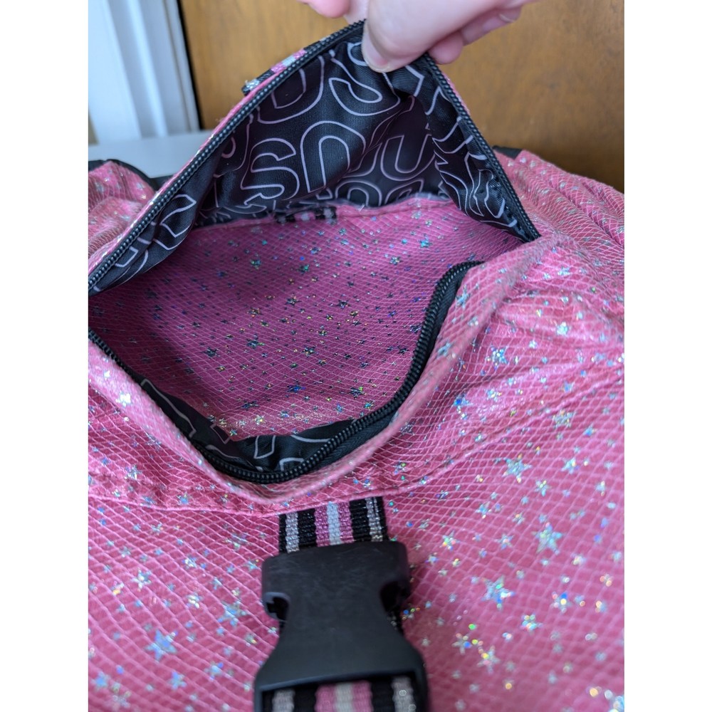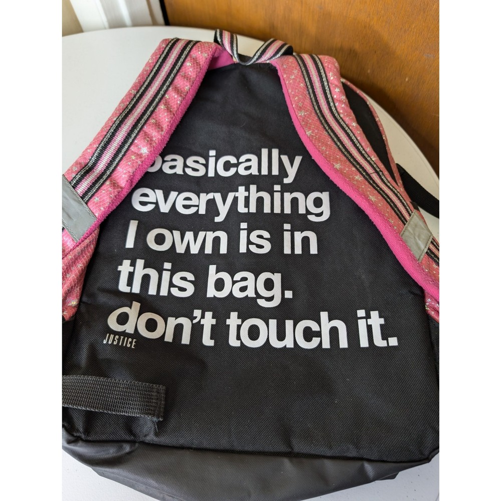 Adorable sparkly backpack with a sassy saying on the back. Includes gear Clip for lunch boxes, etc.