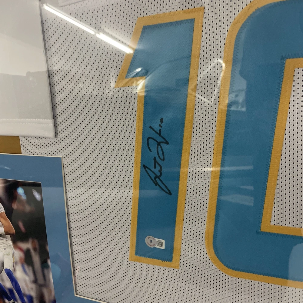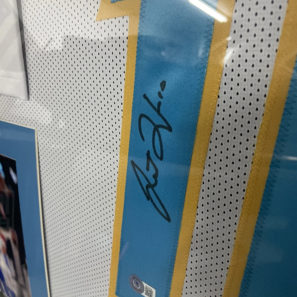 This autographed jersey is a must-have for any football fan! The signature is Becket Authenticated and the jersey is an original, making it a valuable addition to any collection. The framed jersey is perfect for display in a man cave or sports room. It's a great gift for any occasion, including birthdays, holidays, or just because. The jersey is categorized under Sports Mem, Cards & Fan Shop, Autographs-Original, Football-NFL, and Jerseys. Add it to your collection today!