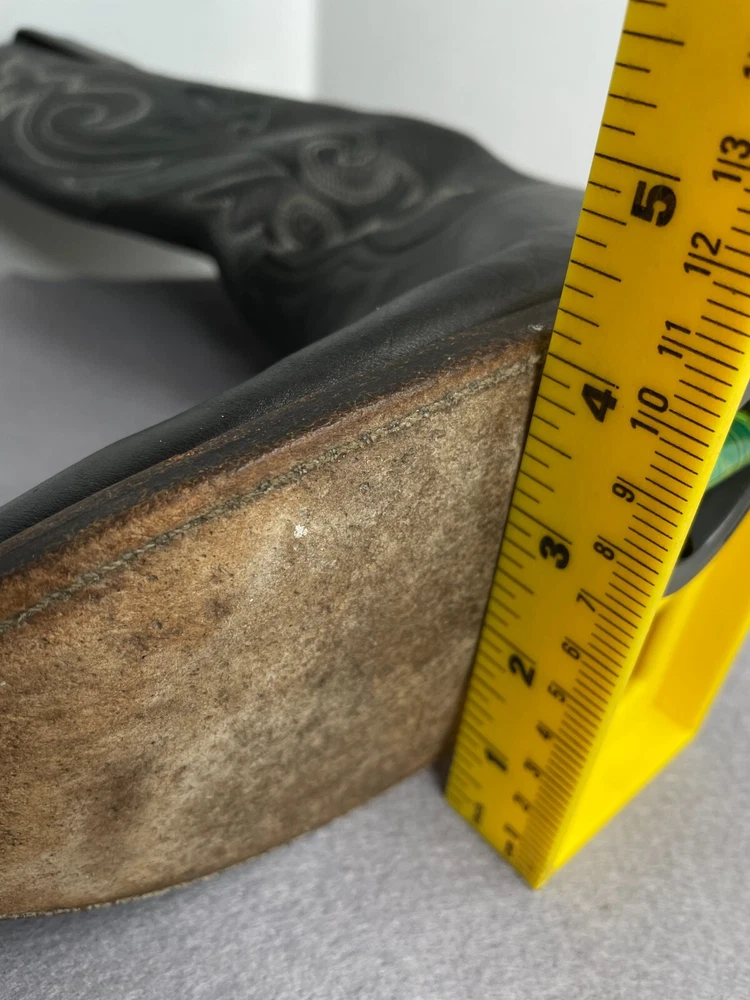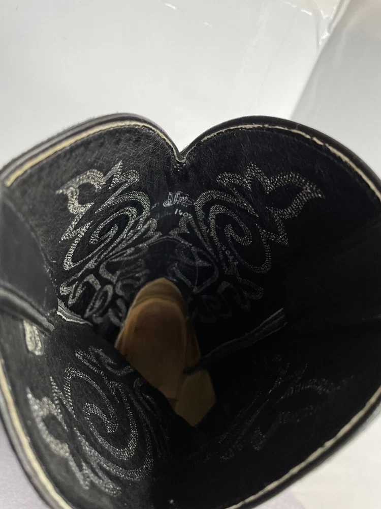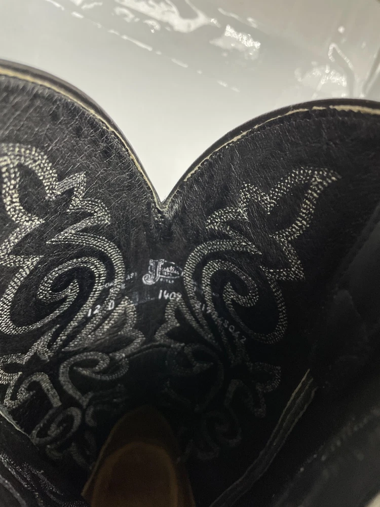Pattern: Western Accents: Embroidered Style: Western Closure: Pull On Features: Comfort Toe Shape: Almond Toe Upper Material: Leather Type: Boot Department: Men Theme: Biker, Cowboy, Western Brand: Justin Boots Shoe Width: Standard Color: Black Product Line: Justin Boots Model: 1409 US Shoe Size: 12