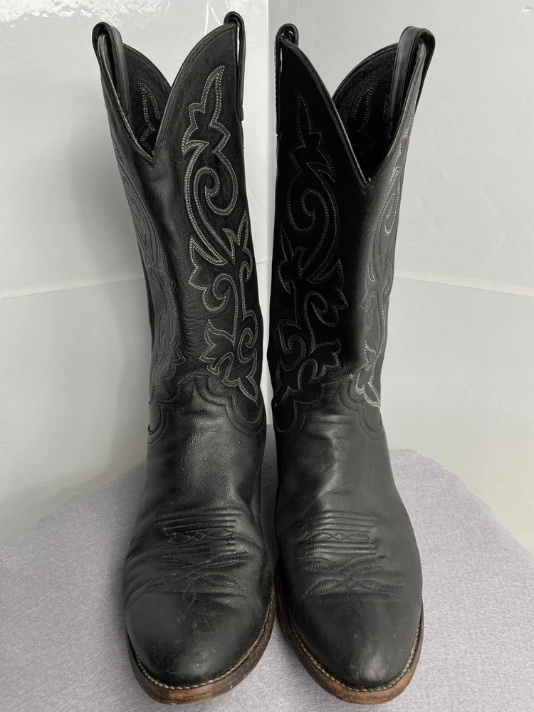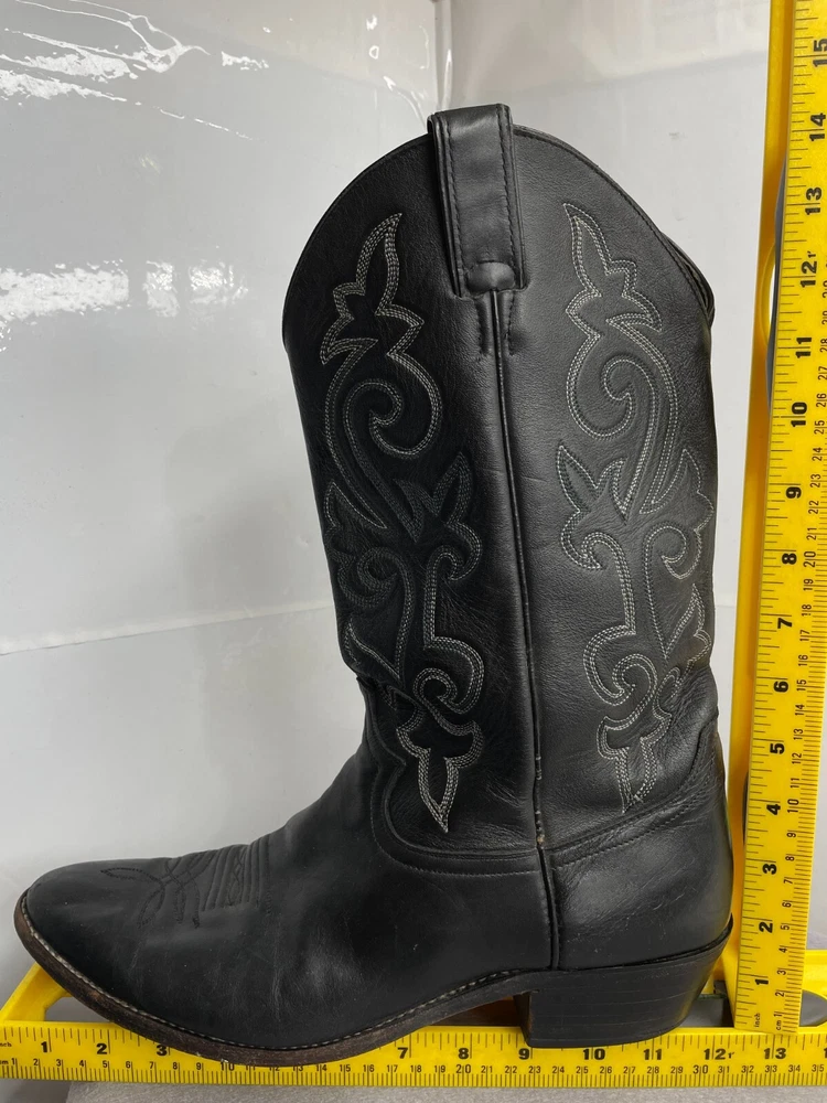 Justin Leather Western 1409 Boots Black Cowboy Embroidered Men's 12 D